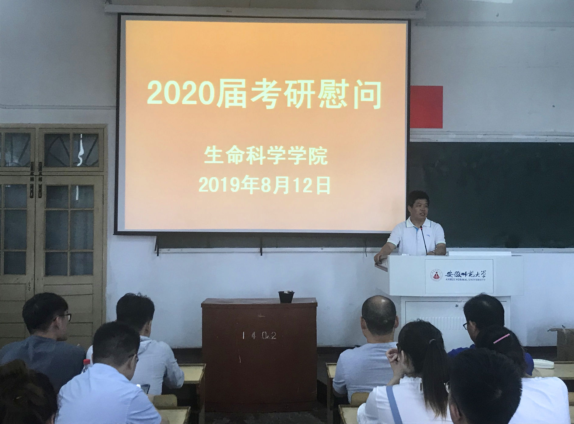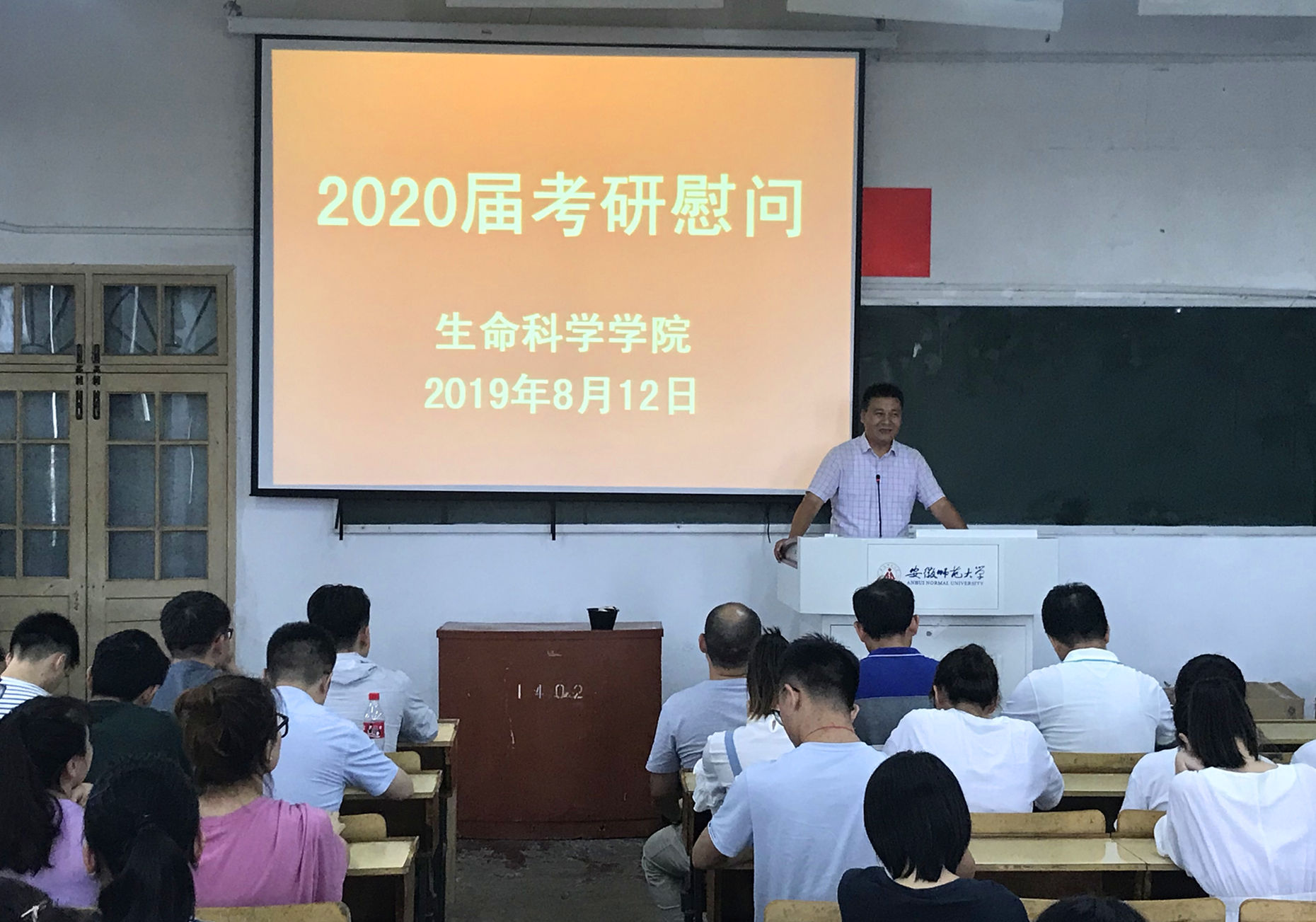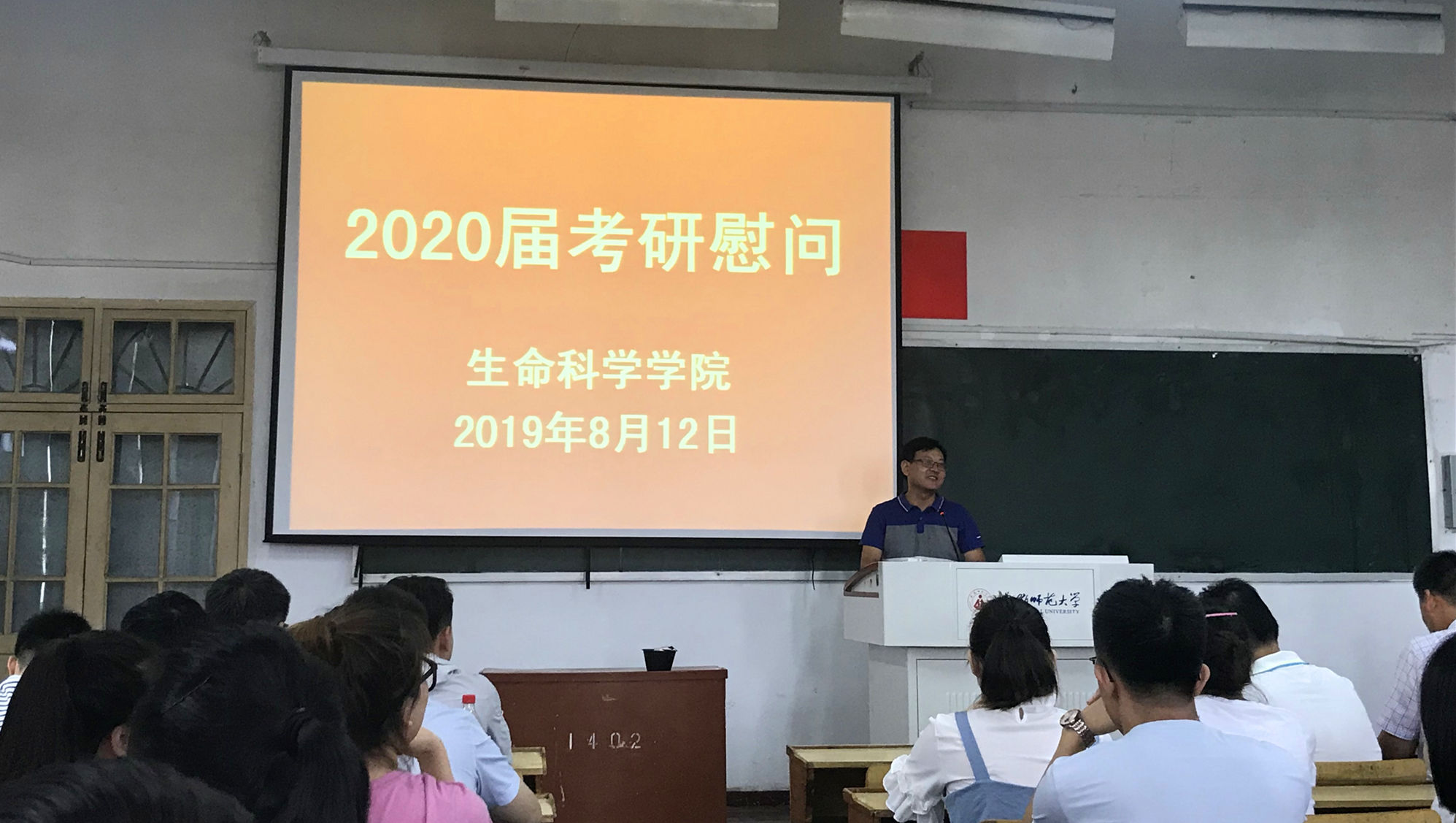 其次,刘振杰老师对学院往年的考研取得的成绩进行回顾。2019届考研中,307位毕业生,有150人考取心仪学校。其中生态学专业考研录取率高达74%,位列全校第一。刘振杰老师用往年的辉煌成绩来鼓励2020届考研学子,相信大家能够有出色发挥。同时,他提醒同学们要注意“四个安全”。一是人身安全,杜绝晚归、不归问题,严格落实请假制度;二是饮食安全,在校期间尽量多吃食堂,少点外卖;三是健康安全,加强身体锻炼,保持良好的身体状态;四是心理安全,调节心理状态,保持良好心态。最后,他希望同学们全面复习,重点把握,互相帮助,互相鼓励,营造良好考研氛围,坚持到考研最后一天!