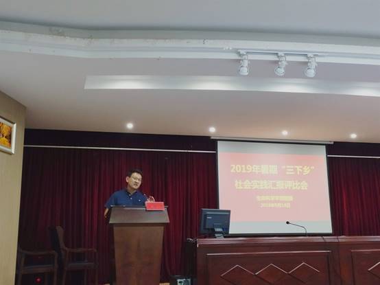 本网讯(生科院 吴世广 王艺) 9月28日,76net必赢线路检测中心团委举行了2019年暑期“三下乡”实践归来话成长总结评比会。学院党委副书记刘振杰,各专业负责人陈明林教授、刘爱民教授、张晓平副教授、陈冬生教授,教师代表杨红飞副教授,辅导员赵喆老师、蔣婷婷老师,学院团委书记何馗馗担任评委。学院校级、院级重点团队共计17支队伍参加汇报交流,2018级各专业学生代表80人观看汇报。