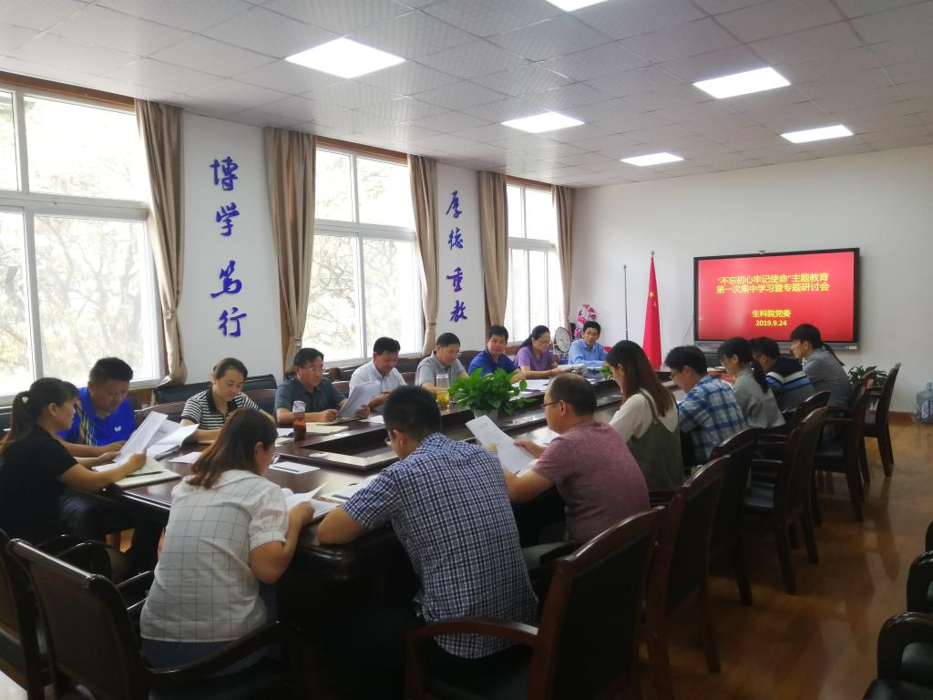 班子成员就“牢记初心使命,永葆政治本色”主题开展专题研讨。蒋学波在发言中指出,中国共产党人的初心和使命是由党的性质和党的指导思想决定的。“不忘初心、牢记使命”是中国共产党人为中国人民谋幸福、为中华民族谋复兴的的政治宣言和行动纲领。他指出,作为在高校工作的共产党员要做到不忘初心、牢记使命,必须努力学习马克思主义、坚定理想信念;必须坚守课堂阵地,坚持立德树人,推进高校思政改革创新;必须传承红色基因,重视校园文化建设;必须培育大学精神,筑牢思政教育生命线。