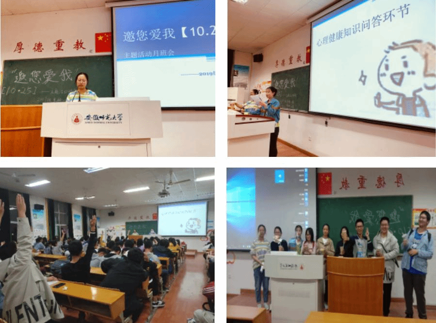 本网讯(生科院 胡玮 黄琳怡 张文婷)为了全面贯彻党的教育方针、推进素质教育,加强和改进大学生心理健康,提高大学生心理调节能力,培养良好的心理品质,10.25日晚2019级生物科学类一班二班于教学楼1409教室联合召开主题为“邀您爱我”的心理健康教育班会。班会由一班心理委员夏守群与二班心理委员朱灿灿共同主持,生科一班、二班全体学生参加了本次班会。