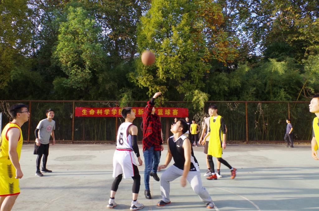 本网讯(生科院)为了丰富学院师生生活,增强师生间情谊。2019年10月31日下午,76net必赢线路检测中心于赭山校区篮球场举办“迎新杯”篮球赛,参赛球队分别为学院教师代表队和研究生代表队。朱国萍副院长,吴海龙教授和研究生辅导员夏齐平到场观看比赛,并为赛场上拼搏的老师和学生加油助威。经过一个多小时的激烈较量,比赛最终以66:66落下帷幕,教师代表队和研究生代表队以相同比分结束了精彩的赛事。