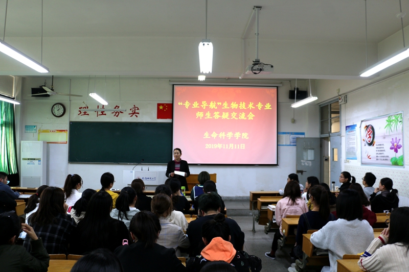 本网讯(生科院 梅佳怡 陶文辰)11月11日,深耕细作抓管理,固本强基促成才。为进一步加强学科专业建设,明确专业方向,学院在田楼8209教室举办生物技术专业师生交流答疑会。生物技术专业负责人刘爱民教授,专业教师李冰欣、谭小娟、张亚,辅导员赵喆及2018级生物技术专业全体学生参加了此次活动。会议由刘爱民主持。