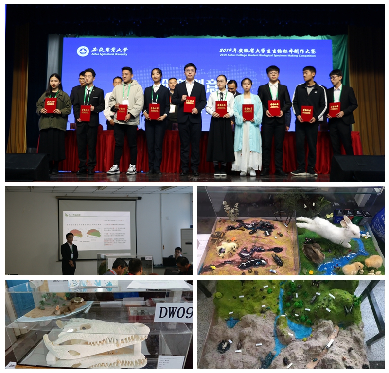 本网讯(生科院 李丽萍 孙凡)11月22至24日,由省教育厅主办的第六届安徽省大学生生物标本制作大赛决赛在安徽农业大学开赛,全省36所高校选送的213件生物标本作品展开激烈比拼,最终经专家投票评选出一等奖作品22件、二等奖作品42件、三等奖作品63件,优秀指导教师53名。我校参赛作品中,斩获一等奖1个,三等奖4个的好成绩,学院杨璐、潘涛2位老师获得“优秀指导教师”荣誉称号。