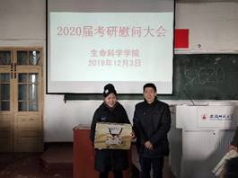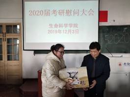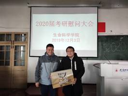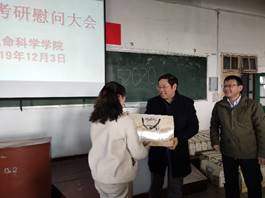 本网讯(生科院 何馗馗 王志)2019年12月3日上午,学院领导蒋学波、吴孝兵、刘振杰、胡好远、王立龙和辅导员何馗馗、王志等慰问2020届考研学子。