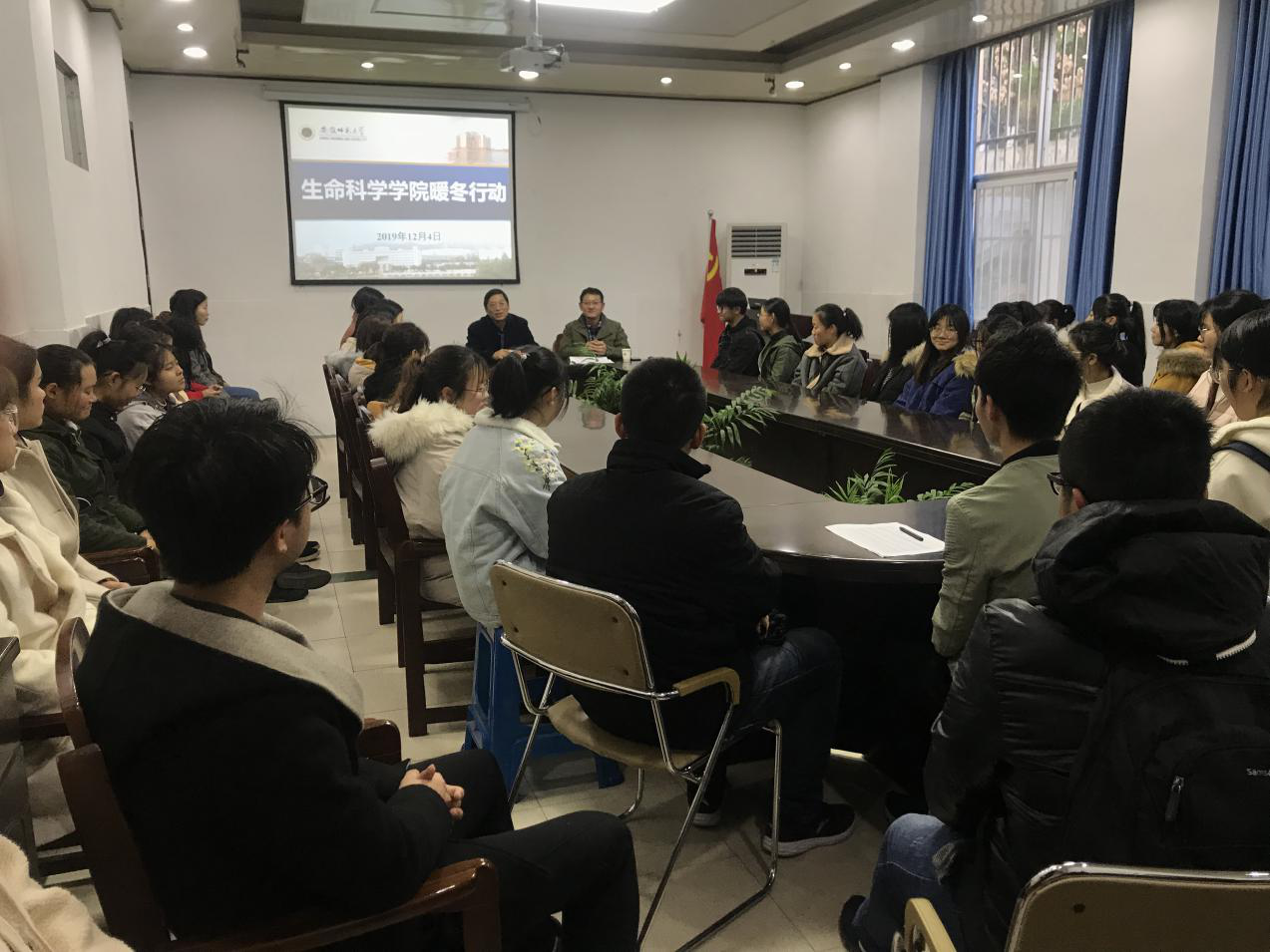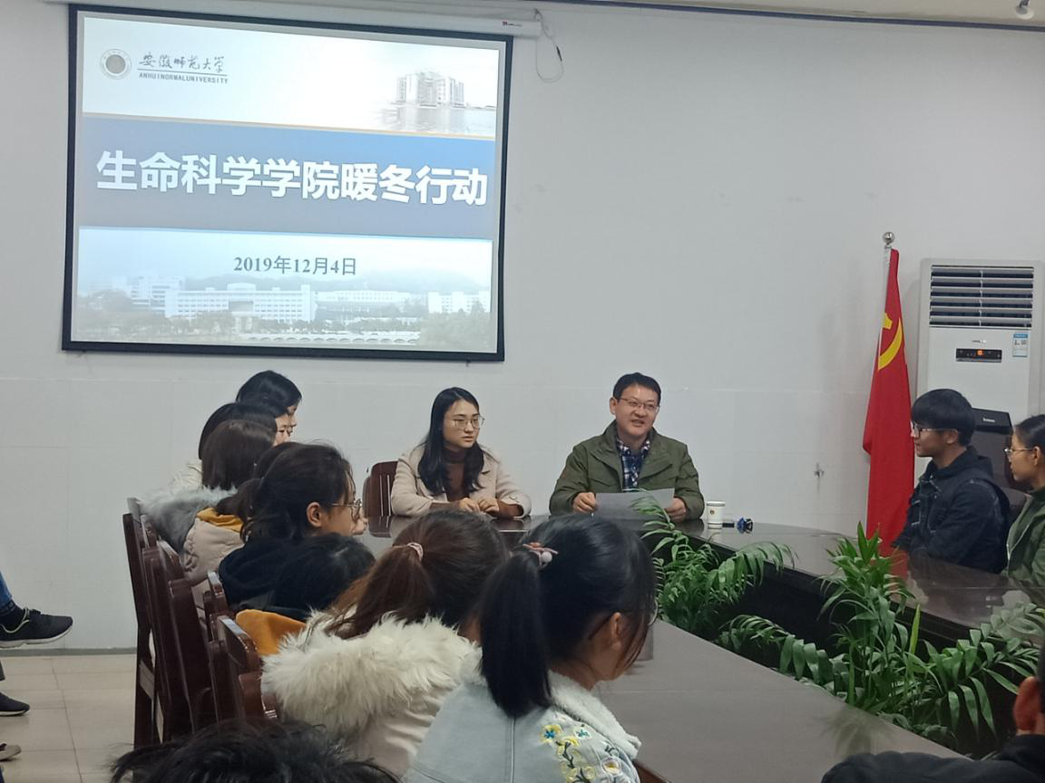 本网讯(生科院 张媛媛 蒋婷婷)12月4日下午四点,学院院长吴孝兵、党委副书记刘振杰和辅导员蒋婷婷于生化楼后二楼会议室慰问学院家庭经济困难的学生,为学生颁发慰问品。学院共有近五十名学生参加了此次慰问会。