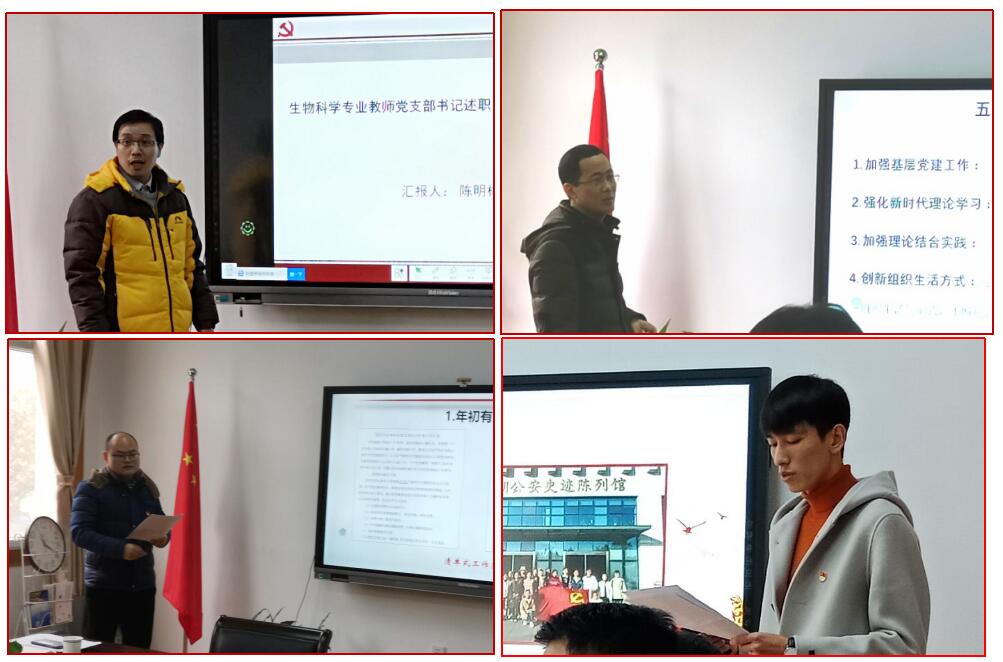 蒋学波解读了学院支部书记述职和党支部考核办法后,14个党支部的支部书记依次从履行党建工作责任情况、支部党建工作开展情况、特色工作、存在的问题、整改措施以及下一年工作思路等四个方面进行了现场述职。