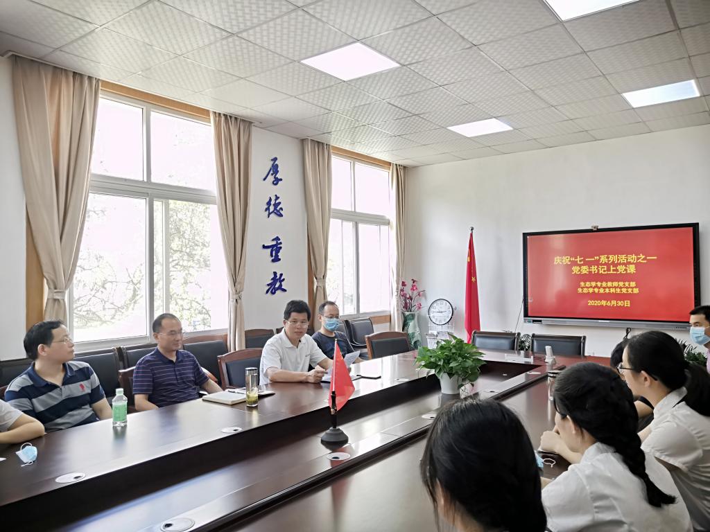6月30日下午,以“七一”建党99周年为契机,76net必赢线路检测中心党委书记蒋学波为生态学专业教师党支部和本科生党支部上党课,课上蒋学波围绕今年“两会”给教师党员和本科毕业生党员上党课。
