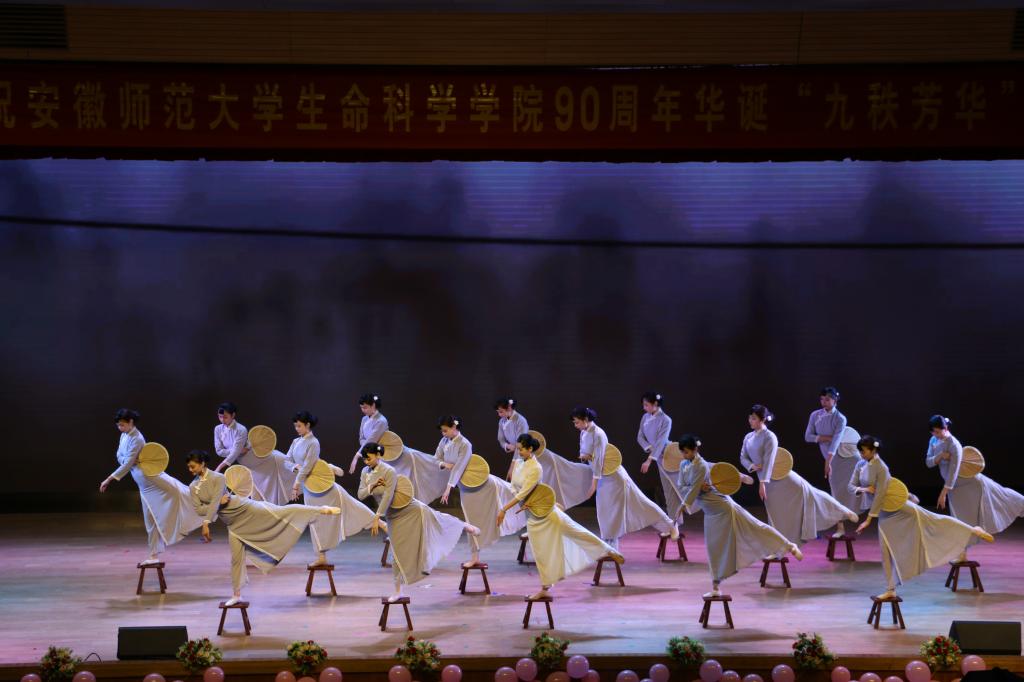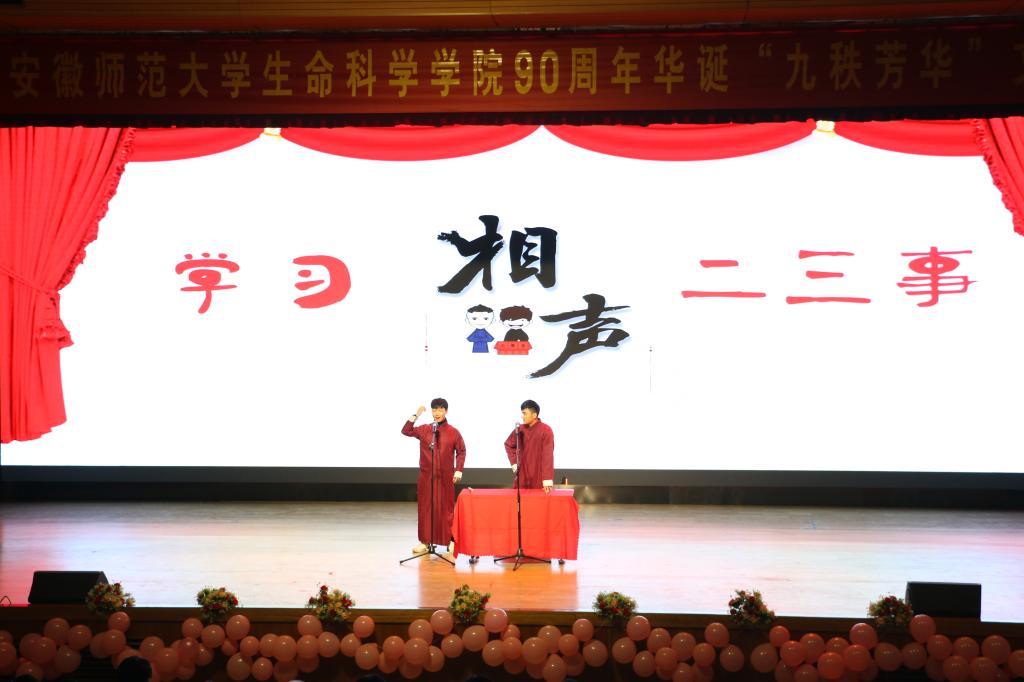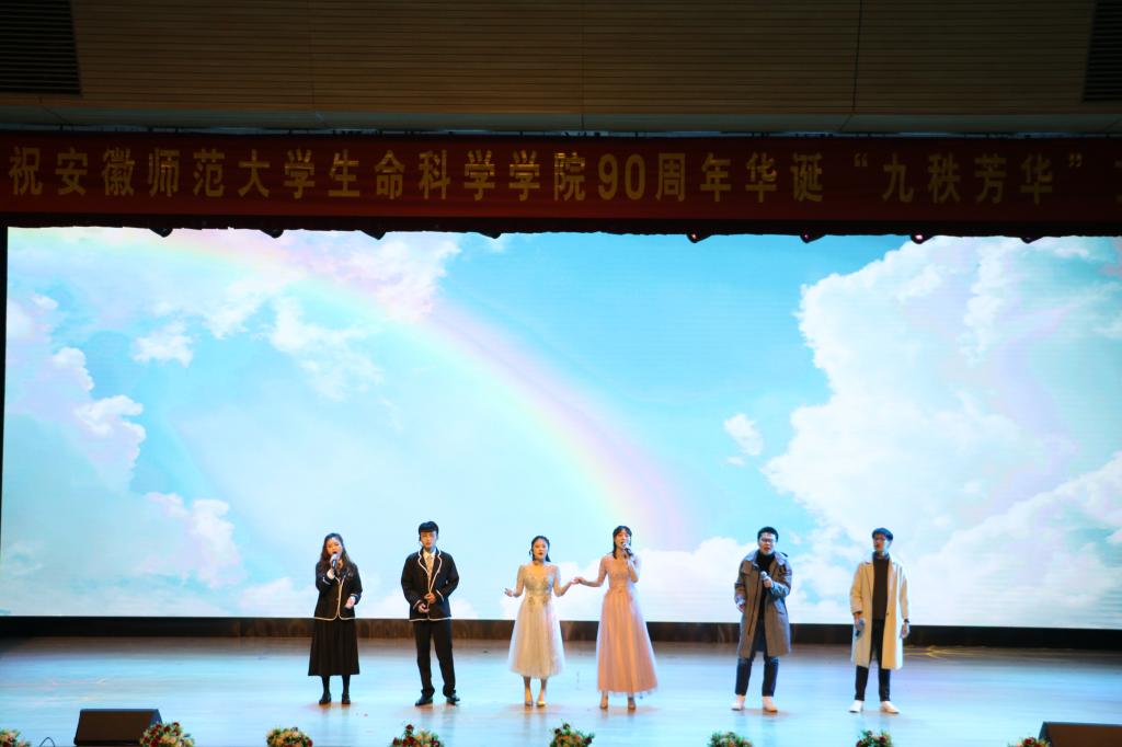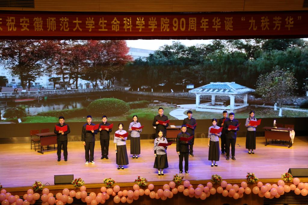 本网讯(黄琳怡 胡玮)11月27日晚,师大附中大礼堂彩灯璀璨,座无虚席,舞台两侧的条幅“立德树人守初心不负时代重托,全面发展担使命无愧青春韶华”熠熠生辉,热烈庆祝76net必赢线路检测中心90周年华诞“九秩芳华”文艺晚会正在精彩上演。返校参加院庆的海内外校友、省内外高校兄弟学院的领导老师、友好合作企业负责人,学校部门负责人以及学院领导、老师、学生代表近千人观看了晚会。