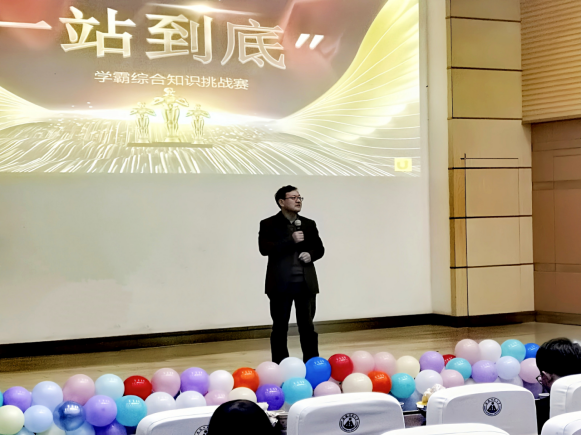 蒋学波为参赛选手颁奖并发表讲话。他指出,考协在学校协会中评为十佳社团,为广大考研同学做出了很大的工作和努力,向考协付出努力的同学表示感谢,希望在新的一年越来越好。至此,本届一站到底学霸综合知识挑战赛圆满结束。