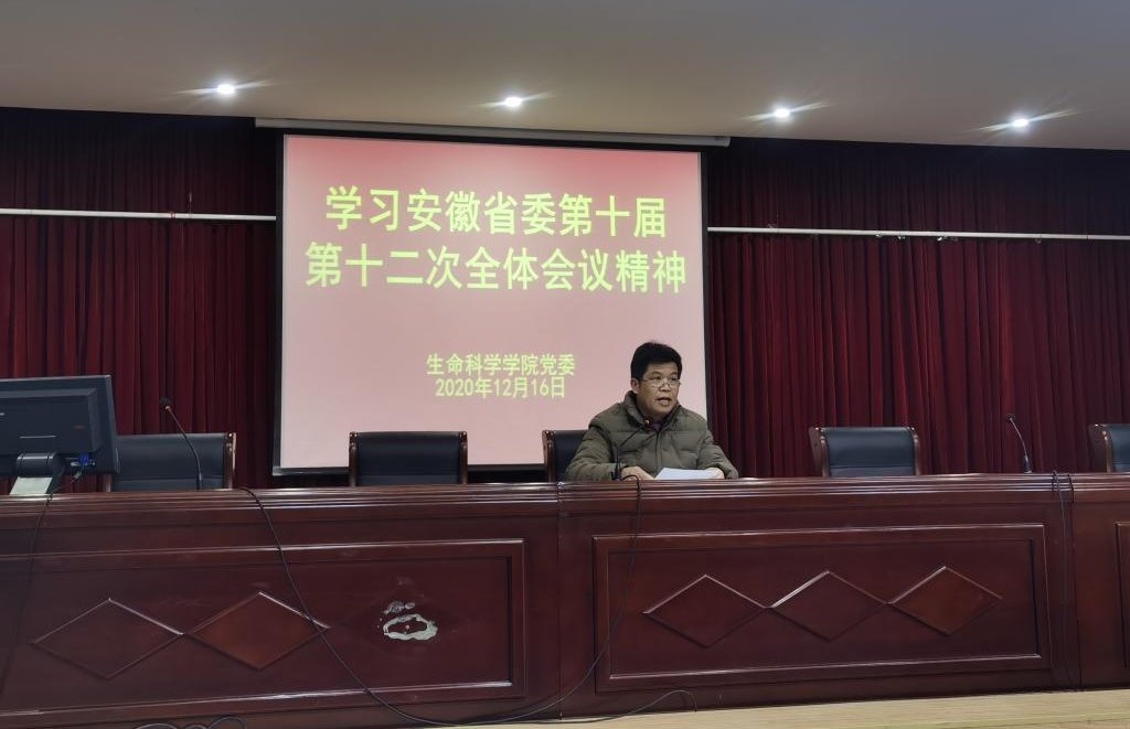 本网讯(生科院 汪倩倩)2020年12月16日下午,生科院召开全体教职工大会,集中学习省委十届十二次全会精神。学院党委书记蒋学波主持学习会议。