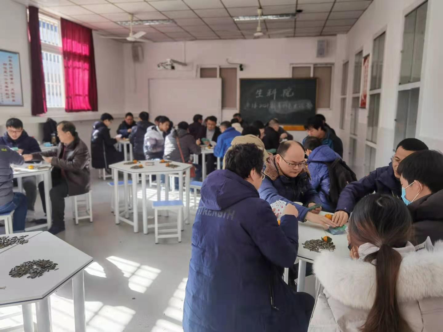 本网讯(生科院分工会)日月开新元,天地又一春。2020年12月31日,我院举办第十届教职工通俗桥牌比赛,学院50余名教职工参加了活动,现场笑声连连、掌声阵阵,处处洋溢着欢乐与祥和。