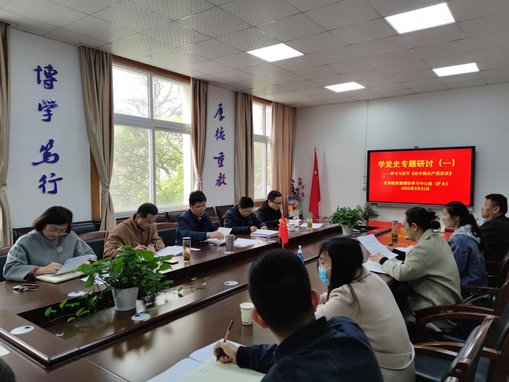 本网讯(生科院 何馗馗)3月31日,生科院党委理论学习中心组召开学党史专题研讨会。院党委理论学习中心组成员及各党支部书记参加会议。会议由蒋学波主持。