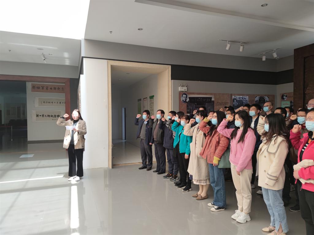 本网讯(生科院 何馗馗)4月9日,在喜迎中国共产党成立100周年、全党深入开展党史学习教育之际,生科院党委组织师生党员赴无为县新四军第七师纪念馆,开展学习党史实践教育活动,学习党史革命史、缅怀革命先烈、重温入党誓词,以实际行动接受党性锻炼和红色精神洗礼。学院党委书记蒋学波、副院长陈冬生,各党支部党员代表,民主党派教师杨安娜、柯丽霞参加活动。