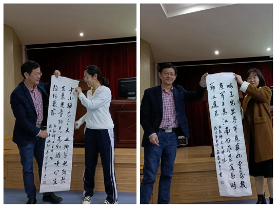 报告会上,朱校长还赠予学生自己的两幅墨宝。