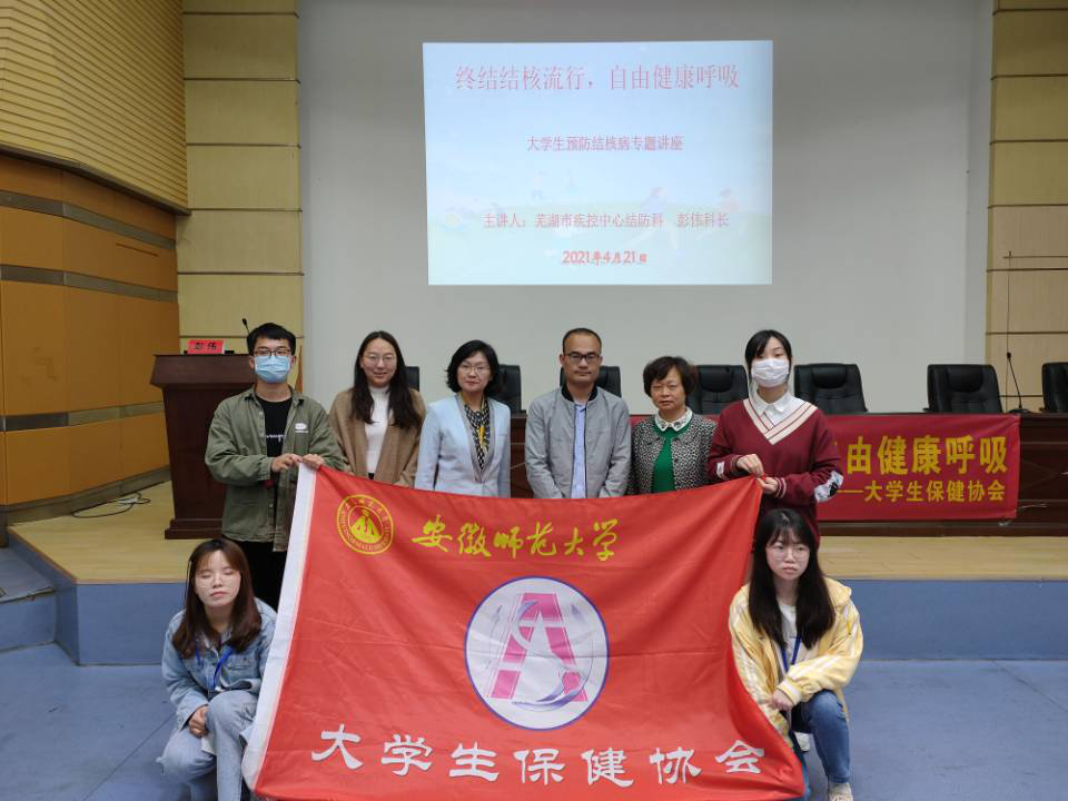 本网讯(生科院 保协)为加强学校结核病防治工作,强化结核病防治知识宣传,进一步提高学生对结核病的认识,促进学生健康成长。2021年4月21日晚19点,bwin必赢线路检测大学生保健协会于赭山校区科技小礼堂举办“终结结核流行,自由健康呼吸”主题的结核病防治知识讲座,讲座邀请到芜湖市疾病预防控制中心结防科彭伟彭科长主讲,到场的还有校医院副院长段萍、生科院党委副书记汪倩倩,讲座由学院团委书记胡玮主持。