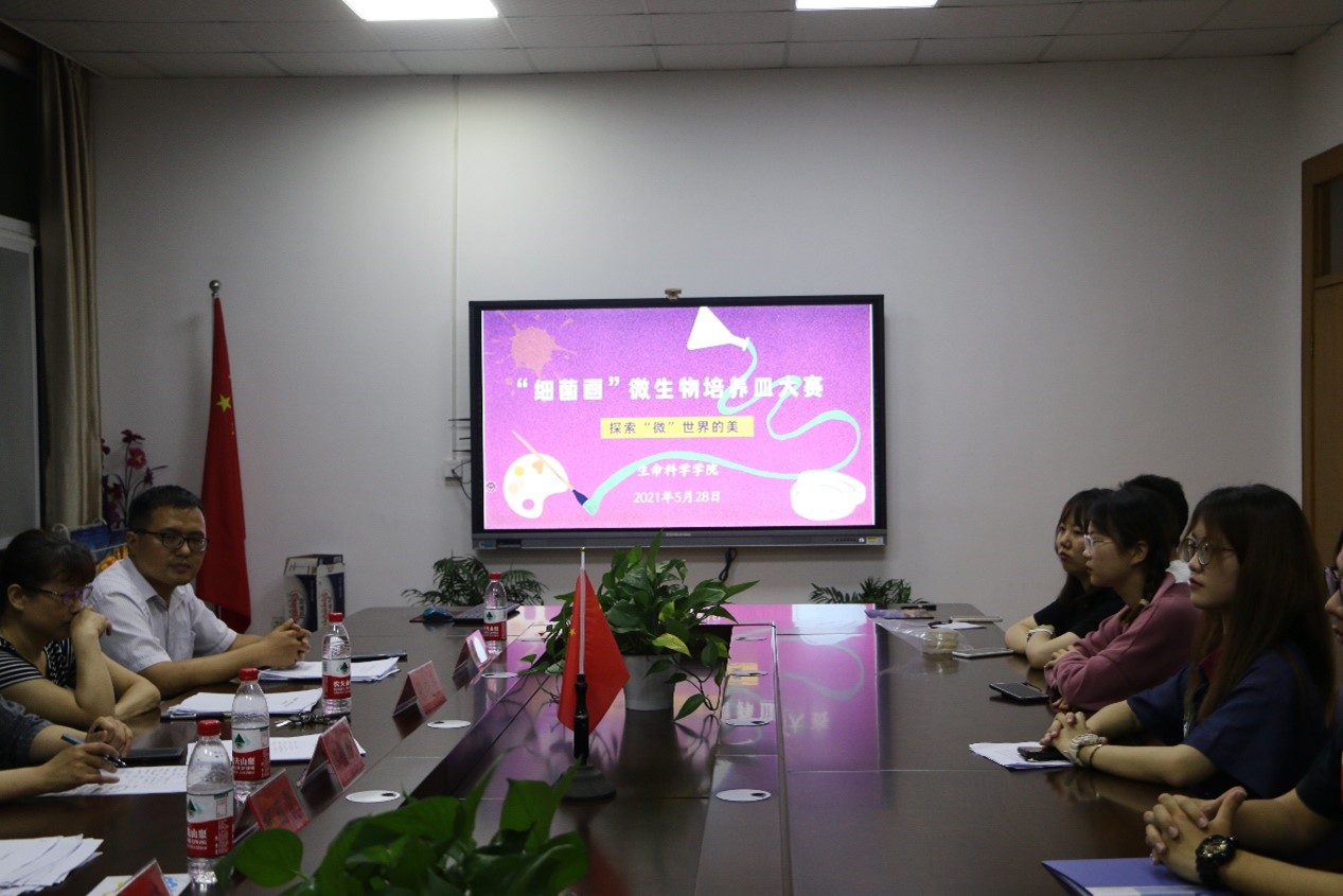 本网讯(生科院 郭可依 胡玮)为了庆祝建党一百周年,探索生命蕴含的无穷奥秘,让大学生直观感受生物的微观世界,5月28日,由76net必赢线路检测中心主办,院团委学生会承办的“细菌画”微生物培养皿大赛在生化楼第一会议室成功举办。院党委副书记汪倩倩,各专业教师代表柯丽霞、张晓平、汪昌保,院团委书记胡玮、副书记孙凡等老师担任评委。