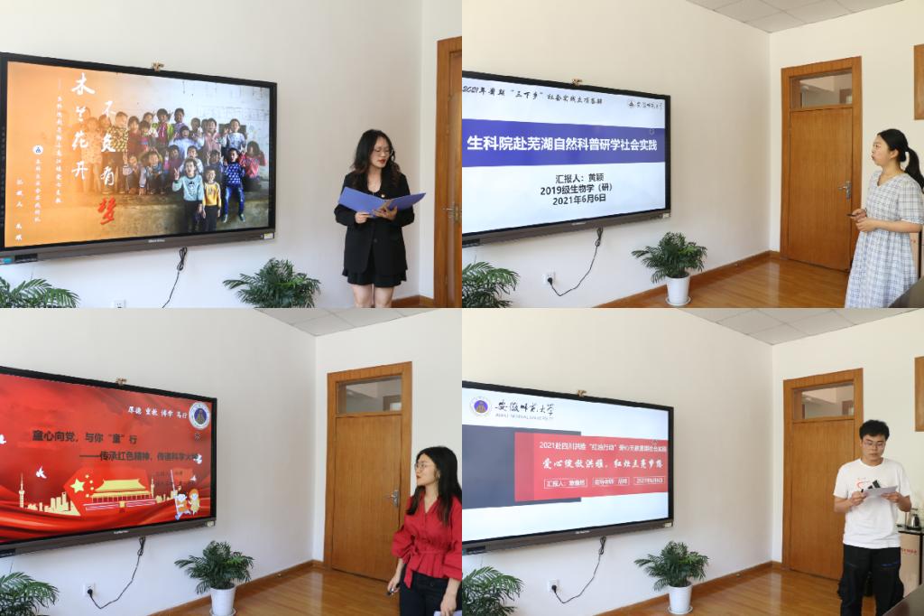 本网讯(生科院 汪文岚)为进一步巩固转化暑期社会实践成果,选拔优秀实践团队及活动,6月6日下午,76net必赢线路检测中心于生化楼二楼第一会议室召开了2021年大学生暑期社会实践校(院)级重点团队立项答辩会。学院党委副书记汪倩倩、院团委书记胡玮和2019级辅导员周毅担任评委并出席本次会议,39支暑期社会实践团队的负责人参与此次立项答辩会。本次会议由院团委书记胡玮主持。