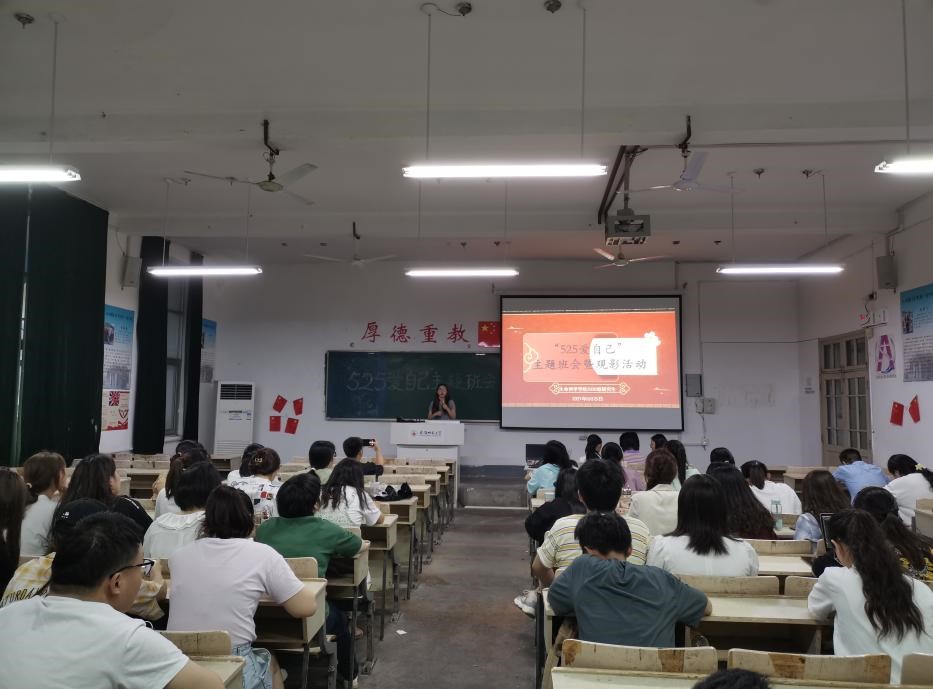5月25日晚,院研会组织2020级研究生在教学楼1402教室开展了“525爱自己”心理健康教育主题班会,会议由心理委员王旭红主持。在建党一百周年之际,通过主题电影展播、热门影视安利、文字游戏互动等方式传播心理健康知识,同学们相互交流积极生活心得,从革命先烈的伟大事迹中汲取精神养分,增强了自身抗压和情绪疏解能力。