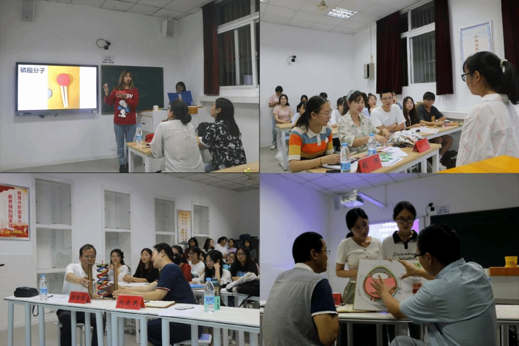 比赛要求通过ppt展示教具的制作过程、使用方法和作用,同学们胸有成竹、意气风发、各展风采。每项作品都富有特点,承载着制作者的思想闪光点与教育意图,展现了良好的价值追求与教学理念。评委老师从教具的科学性、创新型、有效性和实用性等方面给与点评与指导。
