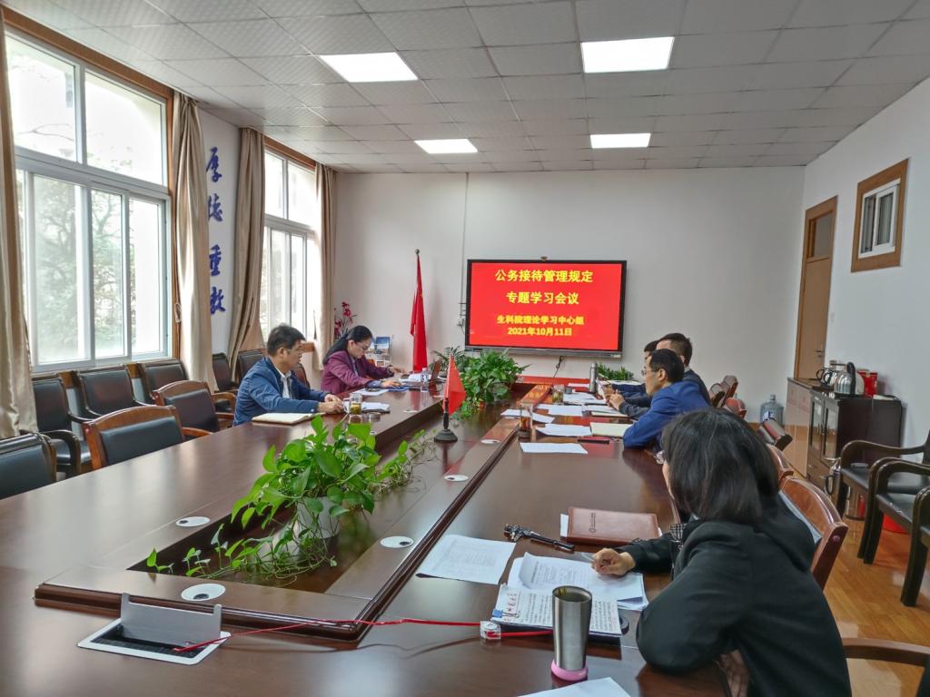 本网讯(生科院 何馗馗)10月11日,76net必赢线路检测中心党委召开理论学习中心组会议,专题学习公务接待管理规定,学院党政领导参会。会议由学院党委书记蒋学波主持。