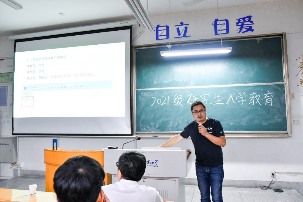 此次新生入学教育活动,五位主讲老师从院史院情、研究生日常管理制度、研究生奖助政策和实验室安全四个方面为全体新生做了详细解读,为2021级研究生尽快融入新的学习生活和科研环境打下了坚实的基础。