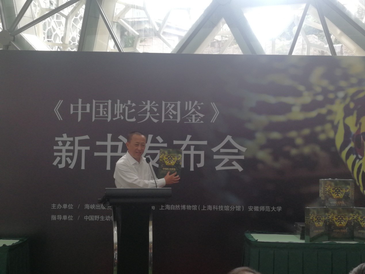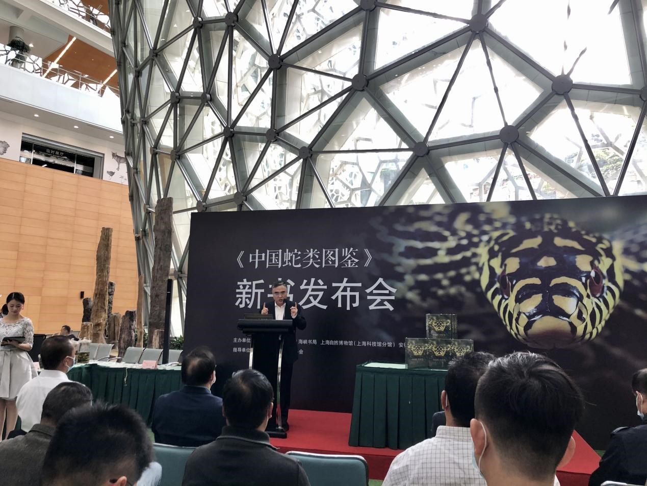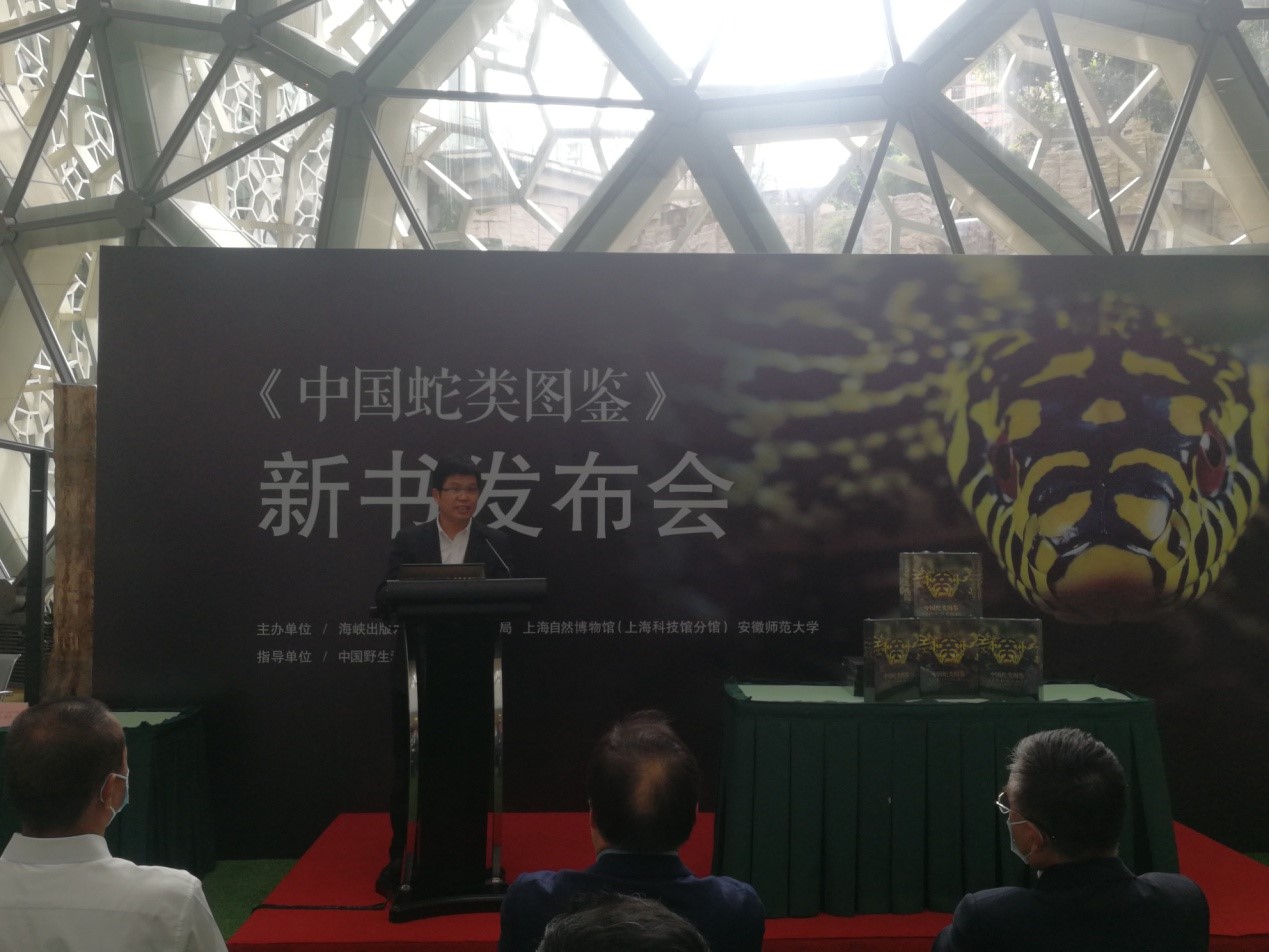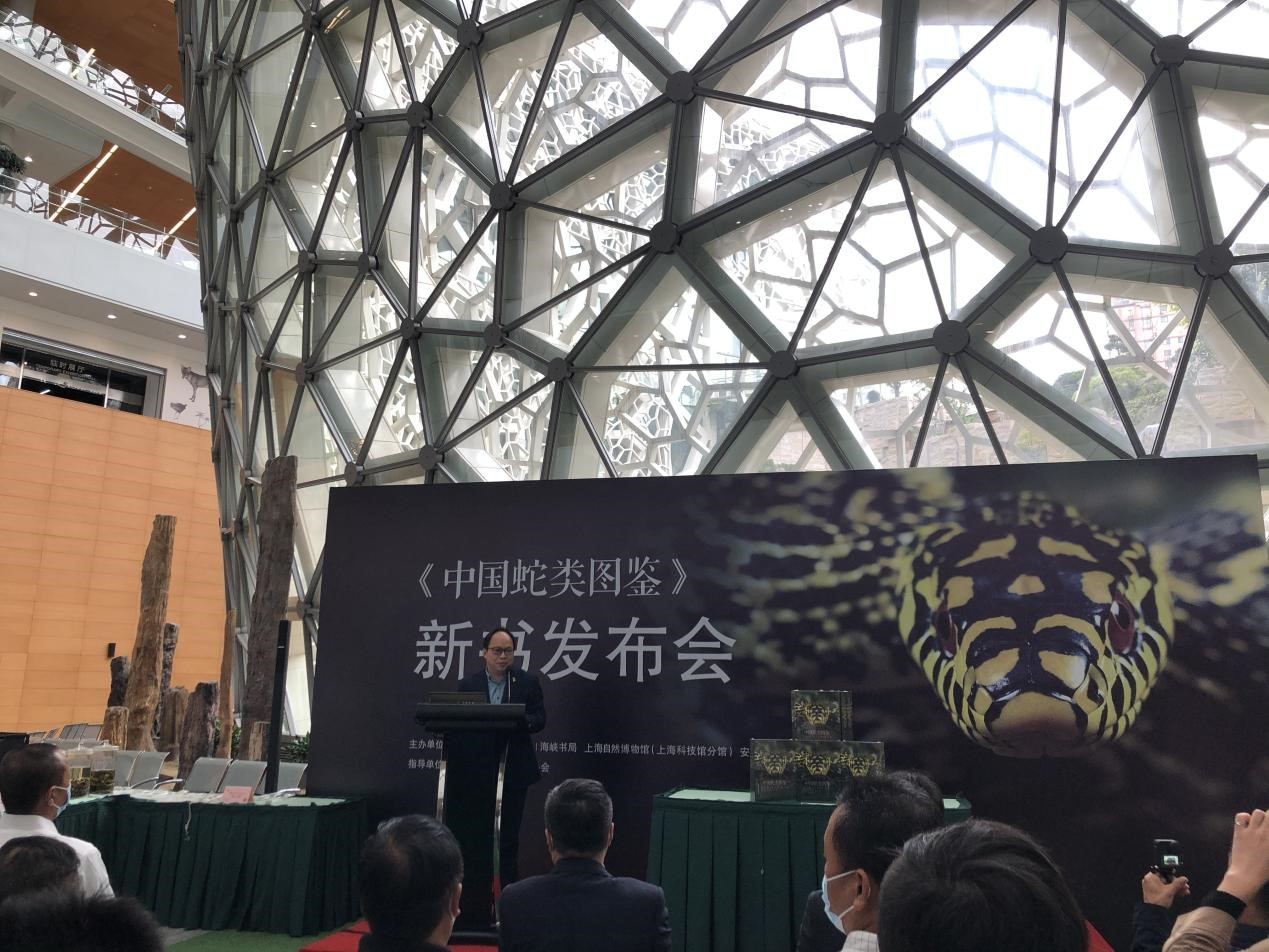 本网讯(生科院)10月18日,76net必赢线路检测中心黄松教授的力作《中国蛇类图鉴》新书发布会暨出版研讨会在上海自然博物馆召开。中国野生动物保护协会、上海自然博物馆(上海科技馆分馆)、bwin必赢线路检测、海峡书局领导,以及本书编委会代表、出版团队、蛇类研究者和爱好者30余人参加。生科院党委书记蒋学波出席发布会并致辞。
