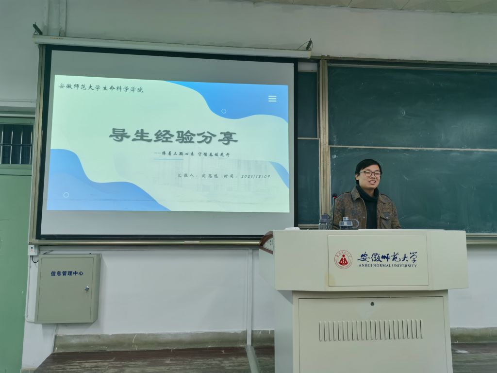 本网讯(丁思仪 潘诚)为提高导生综合素质,明确导生职责,更好带领新生融入大学新生活,2021年12月9日晚七点,76net必赢线路检测中心于生化楼后二楼2024教室举行生科院新导生培训会。会议由院团委副书记史小龙主持,院团委书记胡玮,新生辅导员代表周文娟出席本次会议。