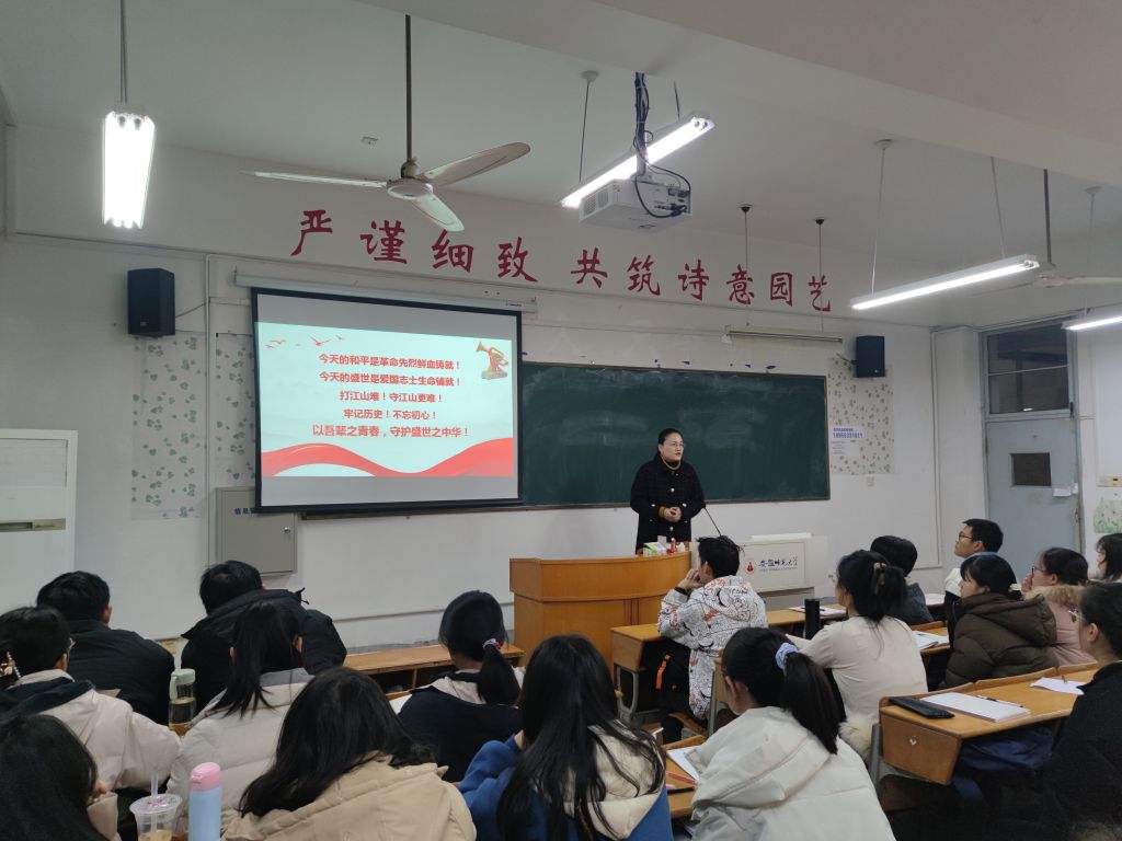 12月24日上午,76net必赢线路检测中心院长朱国萍教授给2021级生物科学(卓越教师)班讲授“伟大建党精神”专题思想政治教育课。该专业负责人姜斌,学院党委委员何馗馗参加。思政课由辅导员周文娟主持。