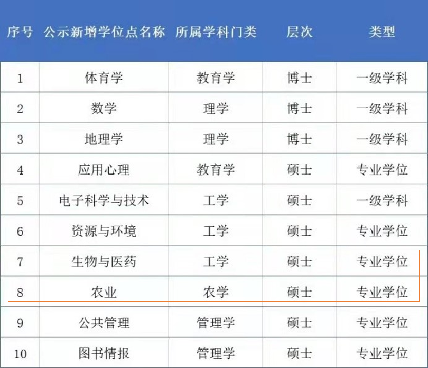 新增生物与医药、农业两个专业硕士学位点;制订、修订专业学位导师遴选办法;讨论并修订新的培养方案和学位授予标准;进一步加强专业学位研究生导师队伍建设,提升专业学位研究生培养质量。学科教学(生物)二级学位点顺利通过全国教育硕士专业学位委员会组织的实践教学质量专项巡查。