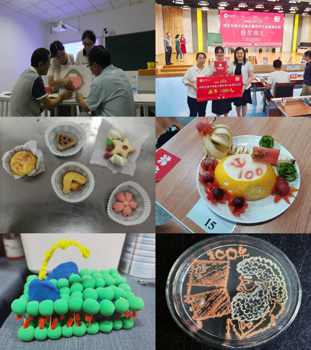 开展教学技能大赛、“未来教师杯”教具制作大赛、“细菌画”微生物培养皿大赛、“绿手指”生物创新手工制作大赛、生化歌曲大赛等专业性比赛,激发生科学子的专业兴趣,提升学生的学业素养。