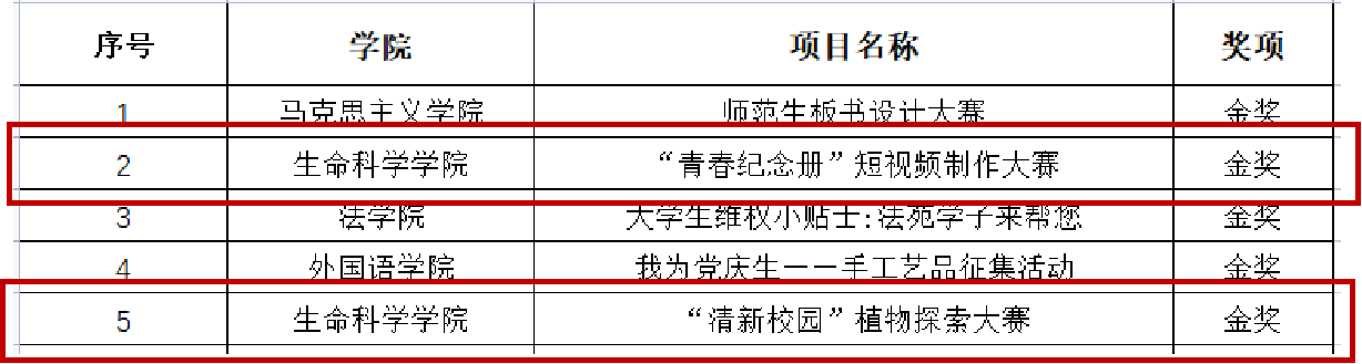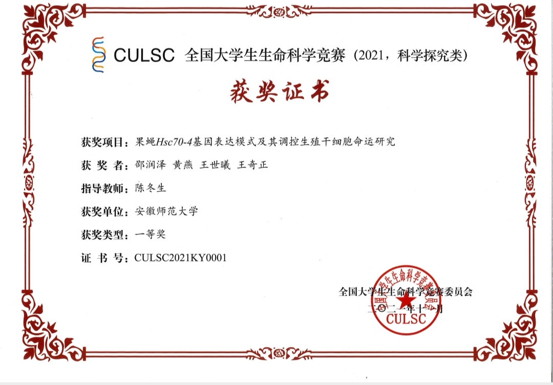 1件作品获中国国际“互联网+”大学生创新创业大赛银奖,3件作品获全国大学生生命科学竞赛国家级一、二等奖,26项作品获安徽省“互联网+”大赛、大学生生命科学竞赛、大学生食品创新大赛、大学生标本制作大赛奖项,1人获大学生艺术展演国家级二等奖,2人获省级二等奖,30人获全国英语竞赛奖项。