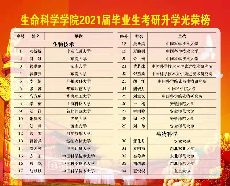 召开精准就业推进会5次,强化就业服务“不打烊”、就业保障“不断线”。组织较大规模专场招聘会3次。做好考研经验交流、慰问、辅导和调剂指导工作,237名毕业生考取(含申请到境外)研究生,平均考研升学率41.95%。其中,170余人考取中国科学院大学、中国科学技术大学等“双一流”“985”“211”高校。