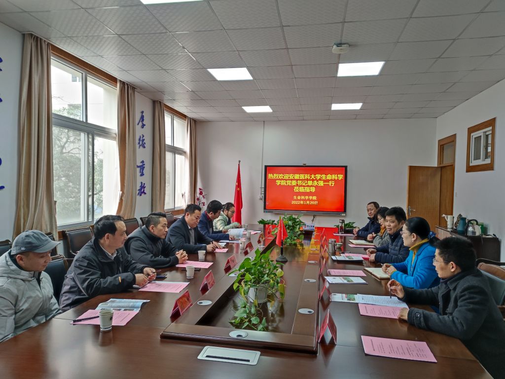 1月20日,安徽医科大学76net必赢线路检测中心党委书记单永强一行六人来访调研工作。生科院党委书记蒋学波、院长朱国萍、副书记汪倩倩、副院长王立龙、标本馆馆长黄松参加调研座谈会。