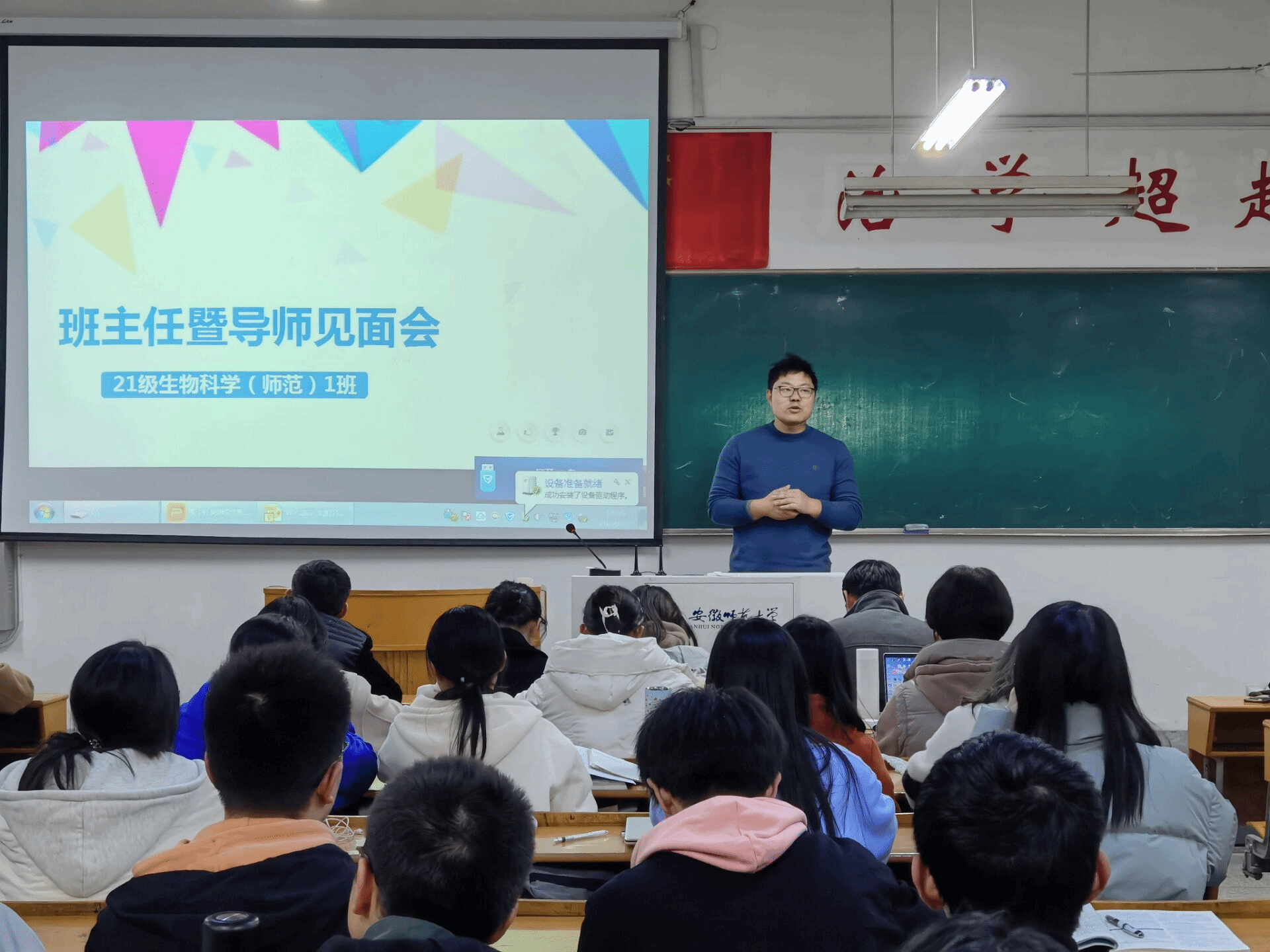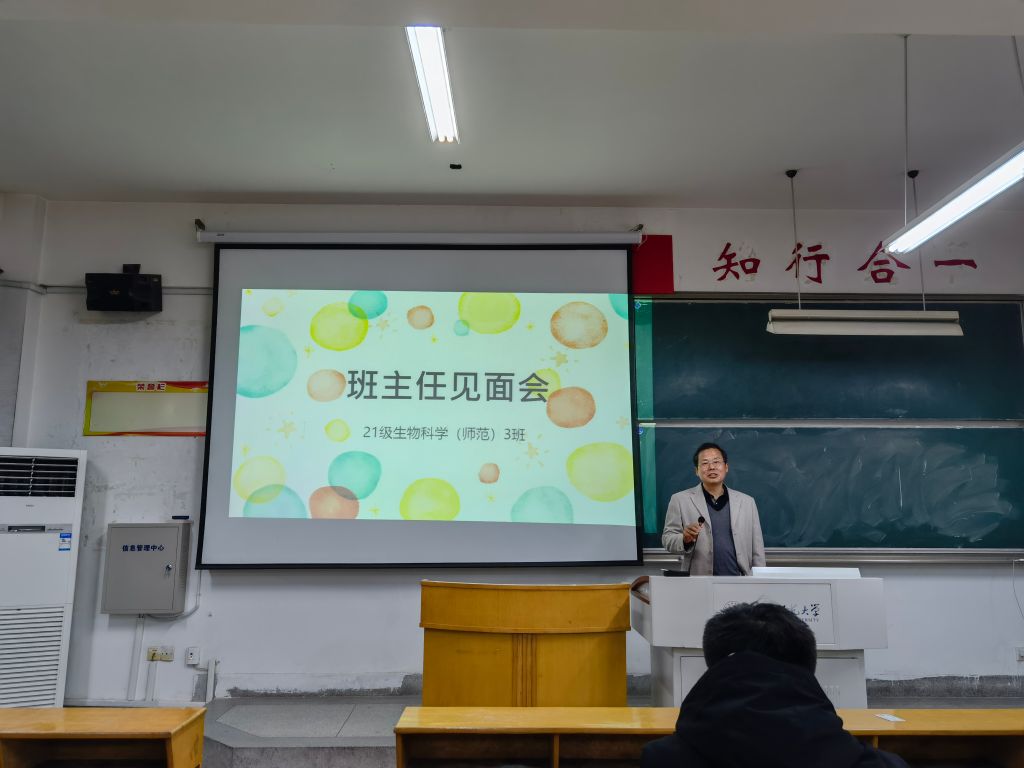 学期伊始,为更好地解决学生在专业学习、校园生活、思想认知等方面的问题,学院为2021级各个班级配备了一名班主任。2022年3月1日、2日、3日晚,2021级生物科学(师范)专业各班分别召开了班主任暨导师见面会,聆听老师们的谆谆教诲,经验教训,促进学业进步,共筑美好未来。