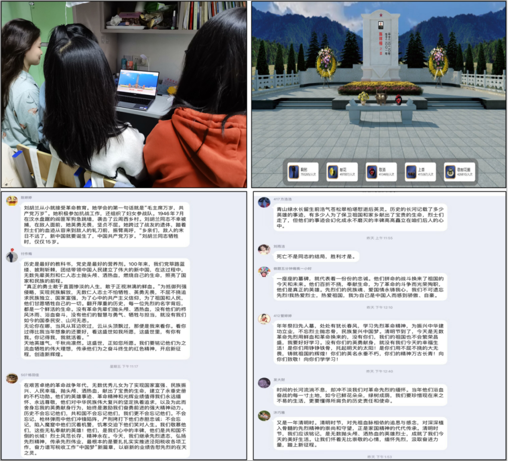 云中祭哀思,不忘告先烈。受疫情影响,学院各基层团支部广泛开展线上祭奠英烈活动,组织团员在中华英烈网开展祭奠英烈、敬献花篮、观看视频。青年团员们在微博、QQ等网络平台表达自身对英烈、对先祖的缅怀纪念。大家纷纷表示要时刻铭记自己肩负的历史使命,继承先烈精神,怀揣思念,奋进向前。