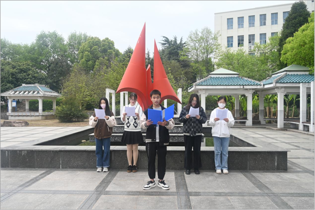 诵读革命诗词,不忘英烈事迹。4月5日学院团委组织学院部分团员青年代表在赭山校区荷园畔诵读革命诗词、分享英烈英雄事迹。同学们在革命诗词和英烈事迹中深深被革命先烈大义凛然,视死如归,为理想信念不惧牺牲,英勇奋斗的伟大英雄精神所感染。