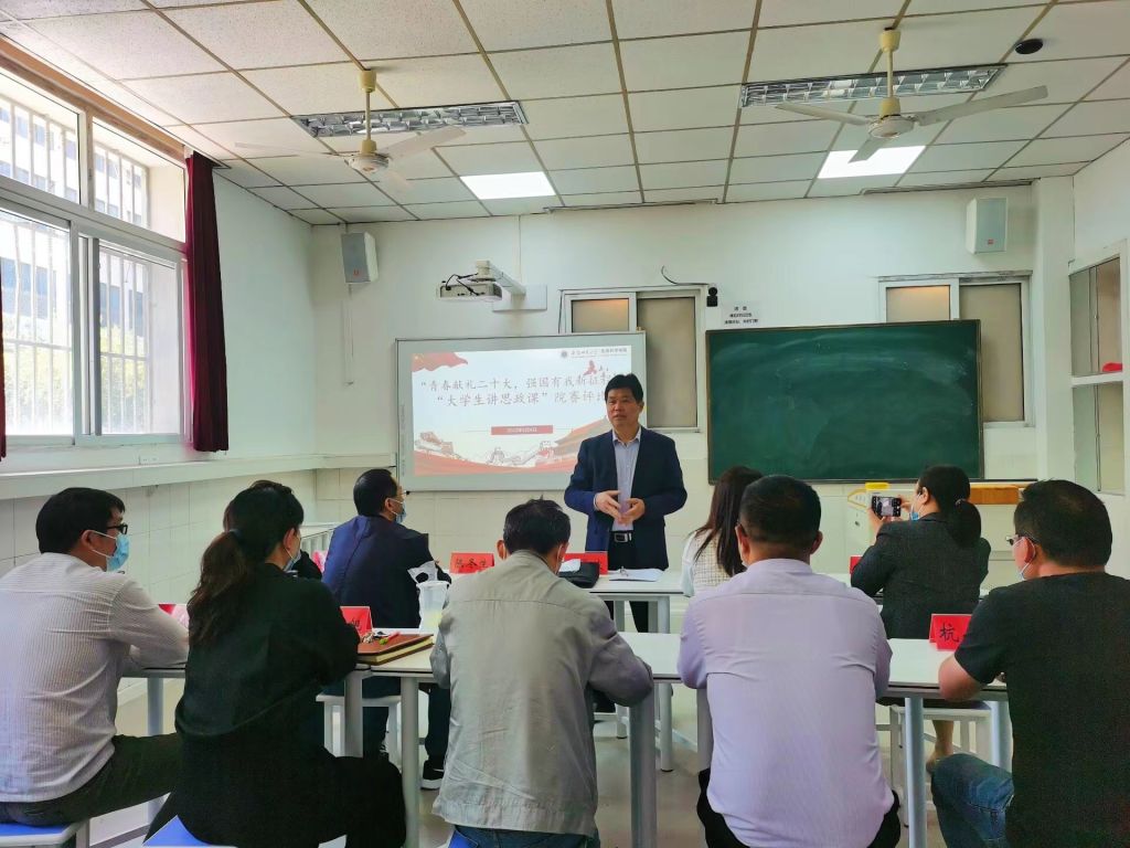 蒋学波在致辞中首先代表学院党委向全体师生送上五四青年节节日祝福,并指出在青年节这一天举行学院首届“大学生思政课”评比活动具有特别意义。他希望选手们能够正常发挥,力争上游,赛出风格,赛出水平。