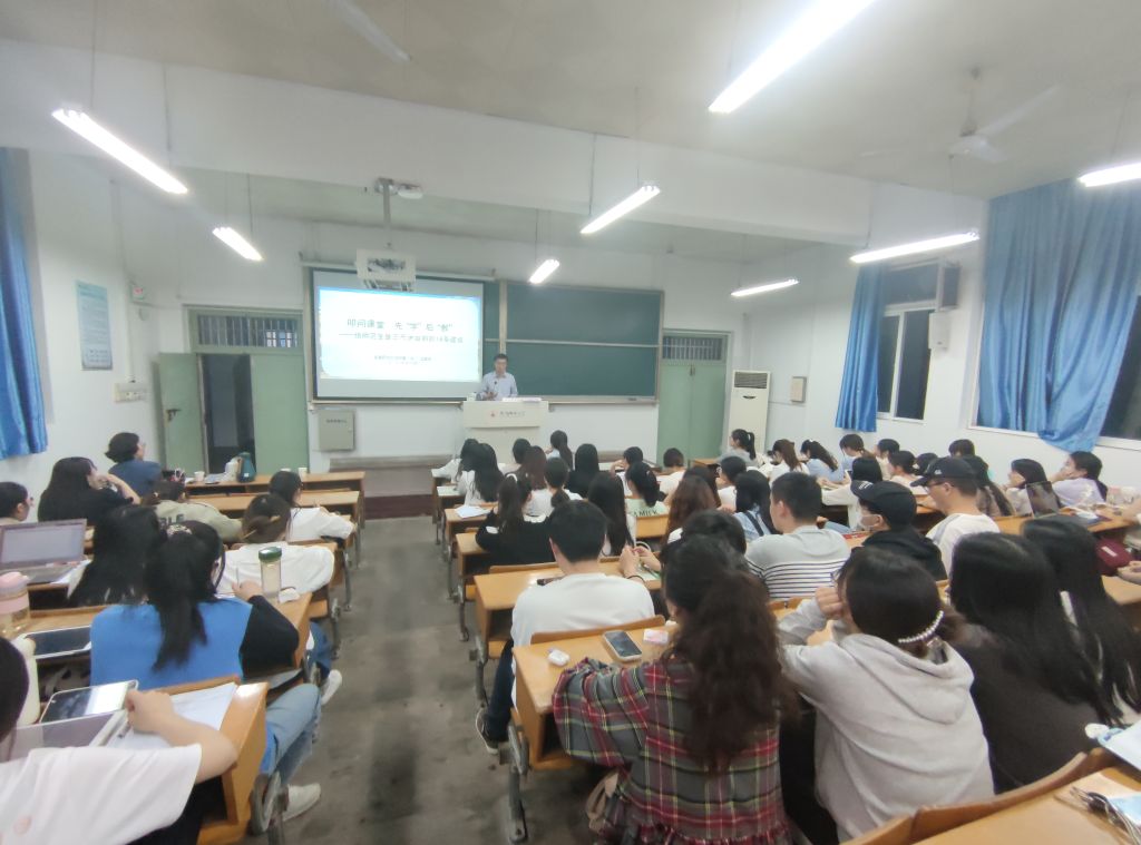 汪建设以《叩问课堂,先“学”后“问”——给师范生登三尺讲台前一点建议》为题,逐一解答了同学们在教师招考备考中的共性问题,结合个人工作经验给出具体备考建议,并就师范生未来教师岗前应做准备给出指导。