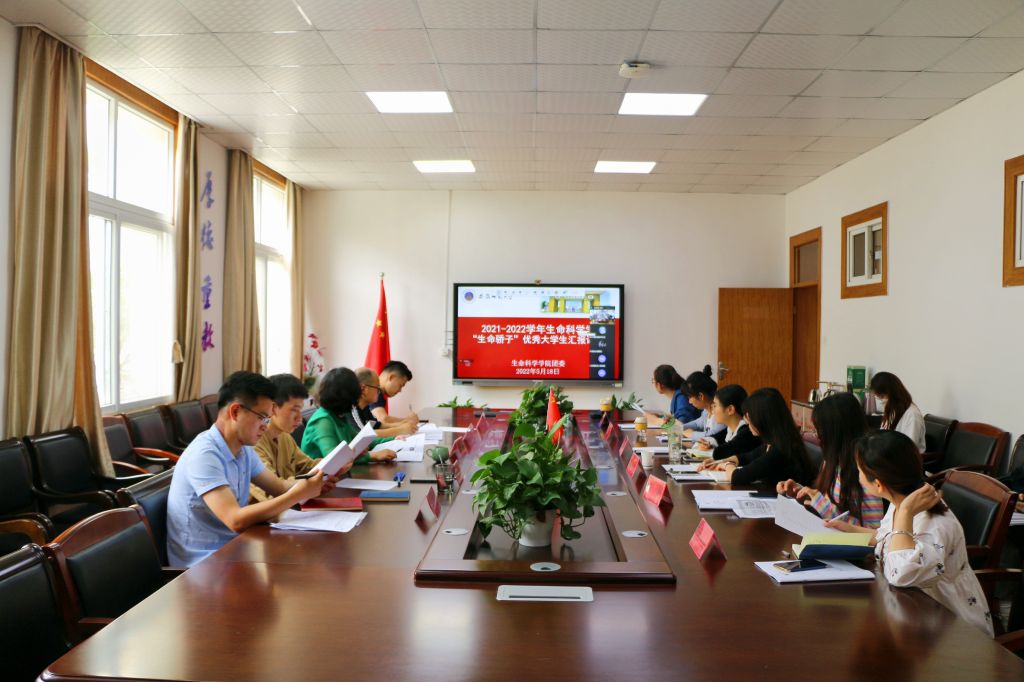 本网讯(生科院 潘诚)为深入挖掘和宣传表彰学生先进典型,集中展现生科学子精神风貌,有效引导青年大学生积极践行社会主义核心价值观。5月18日下午,生命科学学院举办2021-2022年“生命骄子”优秀大学生评选活动,学院党委副书记汪倩倩、宣传委员何馗馗及全体专兼职辅导员出席并担任评委,会议由学院团委书记胡玮主持。