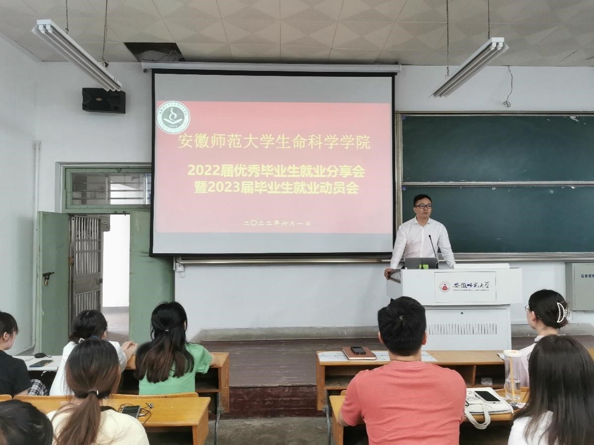 2022年6月1日下午,76net必赢线路检测中心2022届优秀毕业研究生就业分享会暨2023届研究生就业动员会在生化楼2033教室举办。此次活动由学院研究生会主办,邀请了5位不同就业方向的2022届毕业生进行交流汇报,分享自己在求职过程中的心得体会和宝贵经验。副院长王鹏、研究生辅导员魏泽坤以及全体2023届毕业生参加了此次活动。
