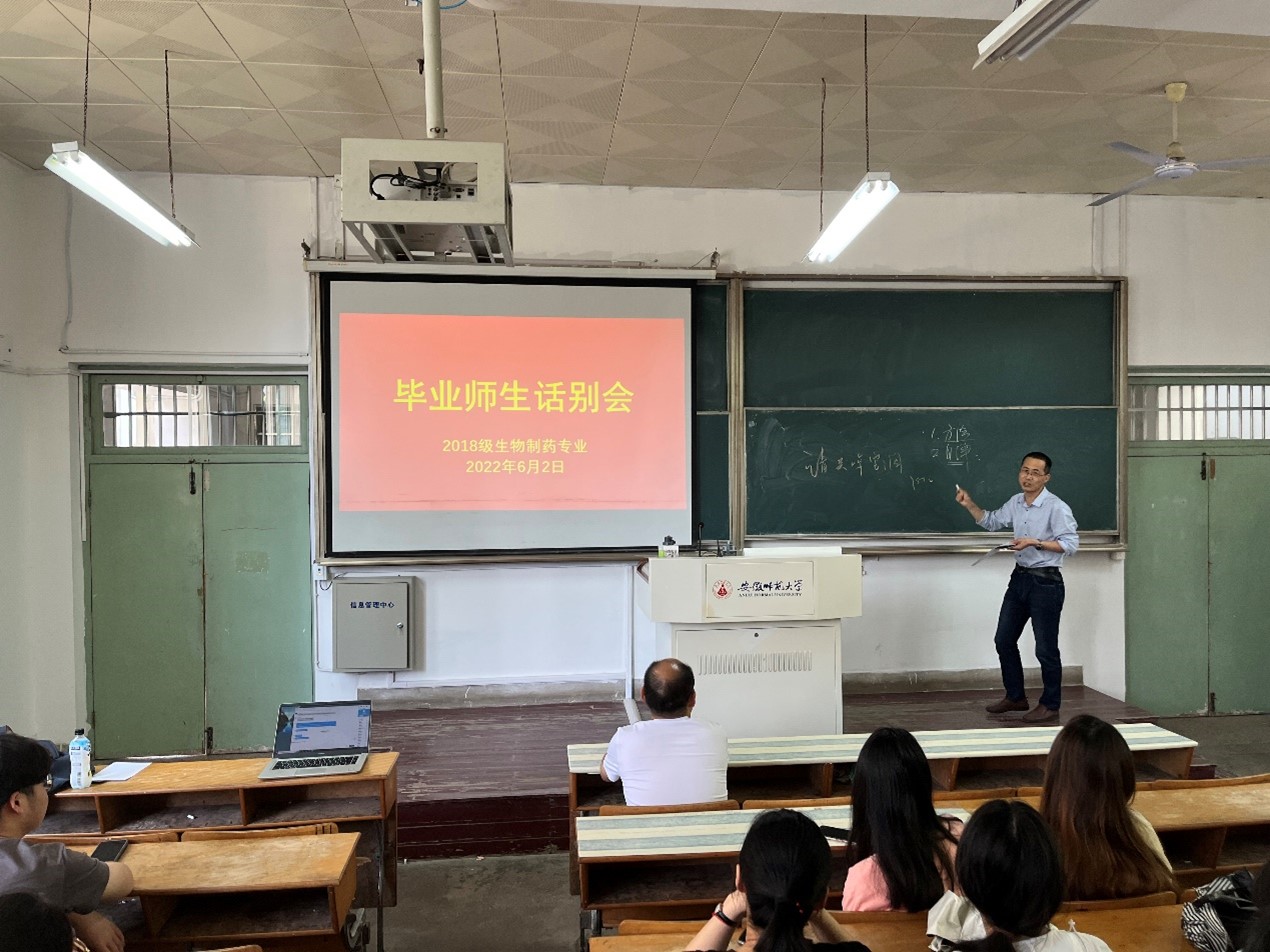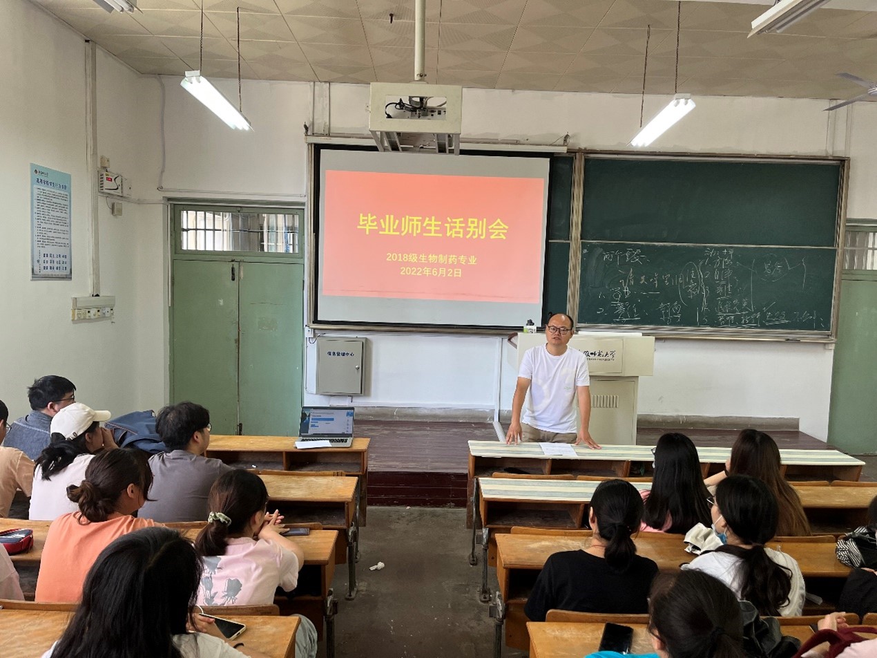 6月2日上午,76net必赢线路检测中心2018级生物制药专业在生化楼2024教室召开毕业师生话别会。学院副院长、生物制药专业负责人陈冬生参加。活动由辅导员何馗馗主持。