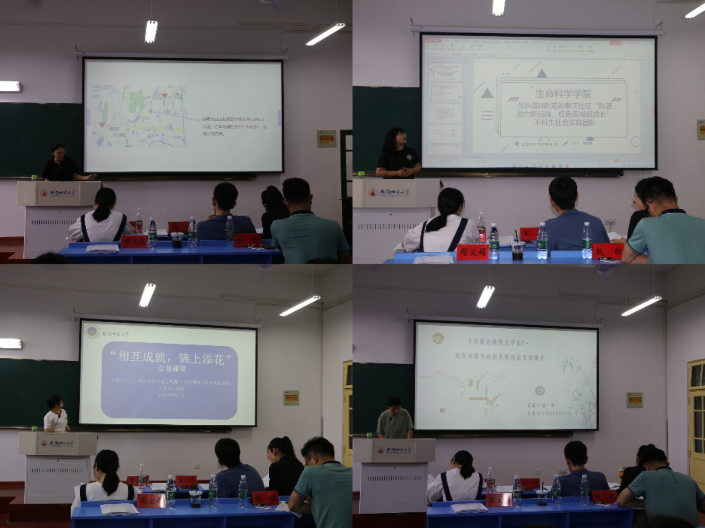 本网讯(生科院 潘诚)为丰富暑期社会实践内容,完善暑期社会实践方案,增强学生暑期社会实践的可行性、实效性和创新性,76net必赢线路检测中心于6月1日下午于教学楼1203教室举行2022年暑期社会实践团队立项答辩会。院团委书记胡玮、副书记周文娟,辅导员王志、赵航、蒋婷婷担任了此次答辩会评委,学院团委书记胡玮主持答辩汇报会。