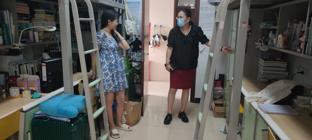 走访中,一行人详细询问并查看了学生宿舍管理情况,强调辅导员要深入学生宿舍进行安全检查,及时排除安全隐患,确保学生人身和财产安全。同时,他们对学生宿舍区的文化宣传等阵地建设给予了肯定,并勉励同学们:一要强化思想政治引领,以宿舍为抓手建设学习型宿舍,让宿舍成为学生提高政治觉悟、树立远大理想、坚定崇高信念的学习之地,真正提升宿舍文化育人的实效;二要建设积极向上的宿舍文化,培育和弘扬社会主义核心价值观,做到知感恩、讲诚信、行礼仪,形成好学、乐学、善思、修身的生活方式、文明习惯和宿舍文化新风尚。