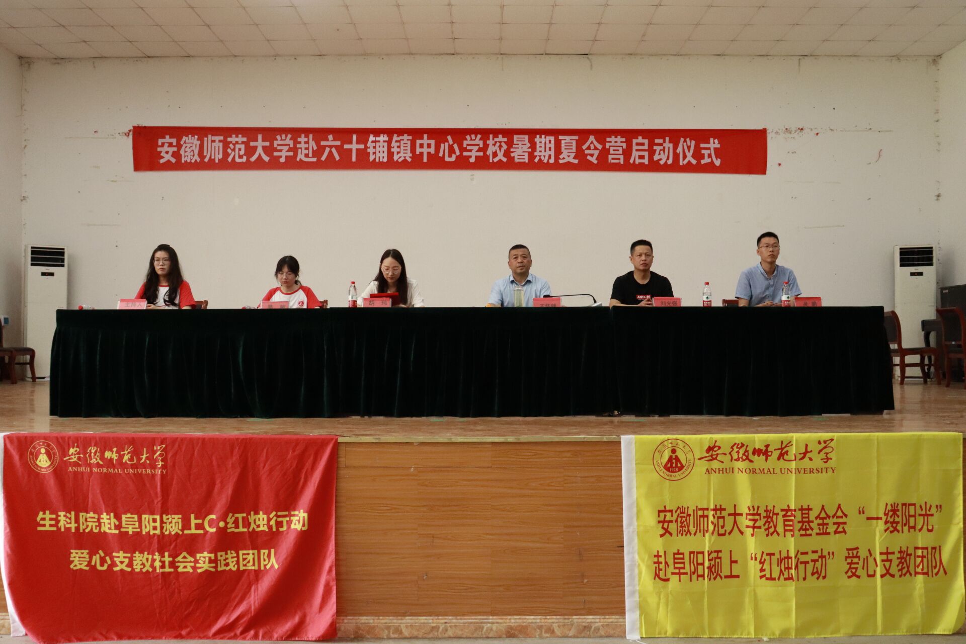7月3日,六十铺镇中心学校暑期夏令营启动仪式在校内报告厅举行,中心学校校长王怀峰、副校长刘光强、年级主任吴鹏、生科院团委书记胡玮、红烛行动全体成员、各班级学生及家长参加仪式,仪式由社会实践团队成员谢雨宁主持。