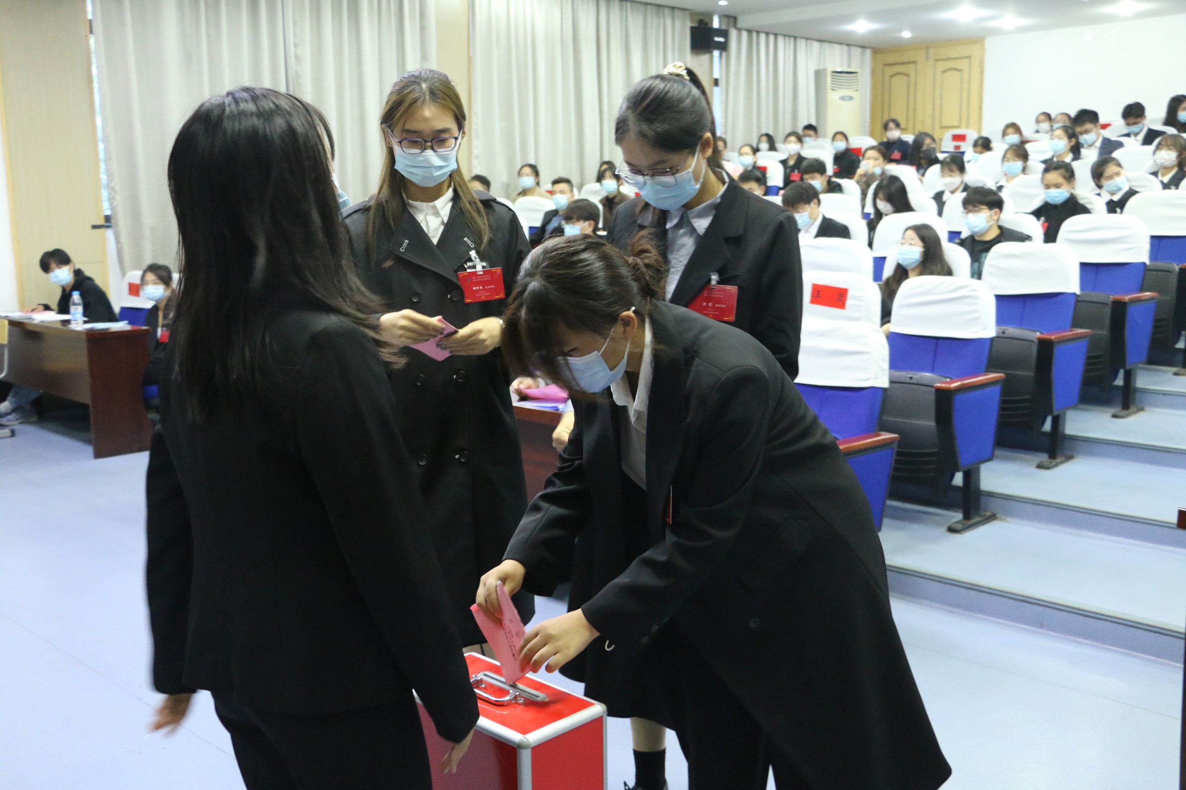 大会审议通过了《学院学生会(研究生会)主席团选举办法》,《学生(研究生)委员会委员选举办法》,及本次学(研)代会总监票人、监票人、总计票人、计票人名单;经过大会民主投票选举,魏泽坤宣读学院推荐参加校学(研)代会代表名单、学院学生会和研究生会主席团名单、学院学生委员会和研究生委员会成员名单,及大会审议学院学生会、研究生会工作报告意见。