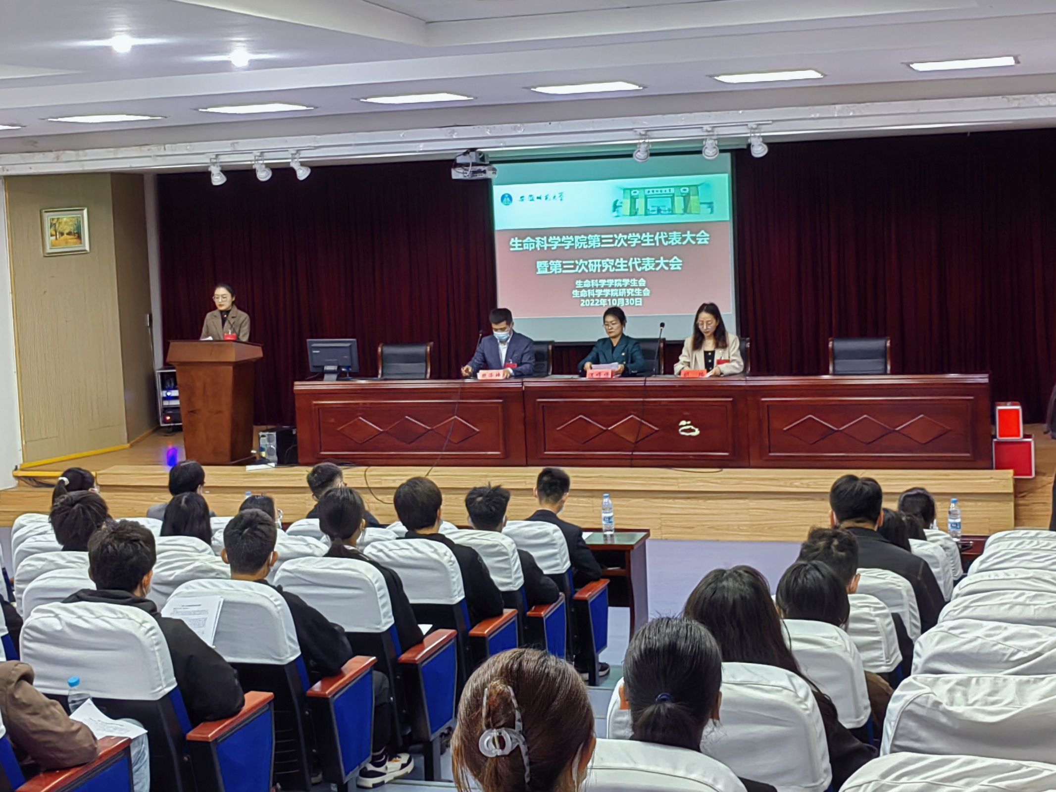 (本网讯 生科院)2022年10月30日,76net必赢线路检测中心第三次学生代表大会暨76net必赢线路检测中心第三次研究生代表大会在图书馆报告厅顺利召开。院党委副书记汪倩倩、团委书记胡玮、团委副书记魏泽坤出席会议。来自学院各年级的90名学生代表、研究生代表参加本次大会。大会由学生代表韩红影主持。