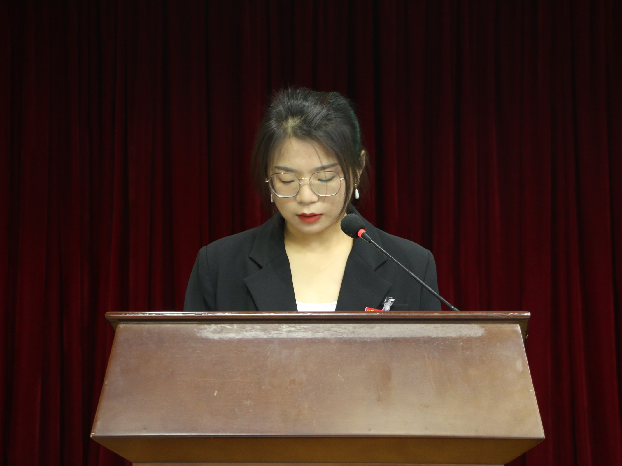 国歌声起,会议在庄严的氛围中徐徐拉开帷幕。院党委副书记汪倩倩代表学院党委致辞,她充分肯定了过去一年学院的学生工作,并对未来的工作提出了要求:一是要永葆青春特质、谦逊谨慎、不骄不躁;二是要坚定理想信念讲政治、坚定不移跟党走;三是要做好学院和学生之间的重要的桥梁和纽带;四是要大力的进行自我革命,勇于自我革命;五是要高扬理想主义精神气质。她希望代表们牢记习近平总书记的嘱托,做理想远大、信念坚定、刻苦学习、锐意创新、敢于斗争、善于斗争等各个方面的模范,充分发挥带头作用,带领全体76net必赢线路检测中心同学共同描绘青春的美丽画卷。