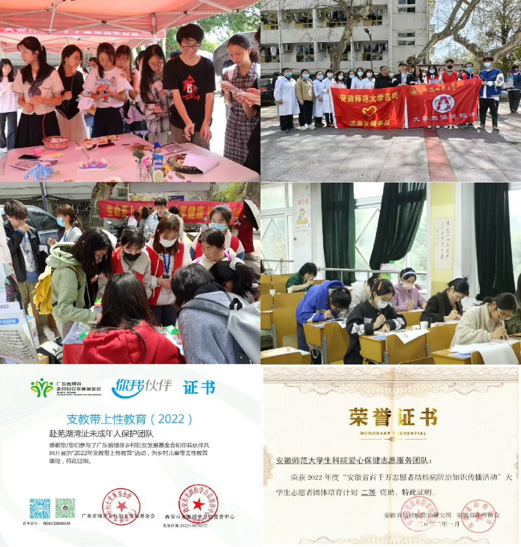 社团活动丰富化、多元化,大学生生命科学协会获2022年第六届大学生环保知识竞赛“优秀协办单位”,大学生保健协会获2021年度“安徽省百千万志愿者结核病防治知识传播活动”优秀志愿者团体,成功获得该项目2022年度团体培育计划二等资。