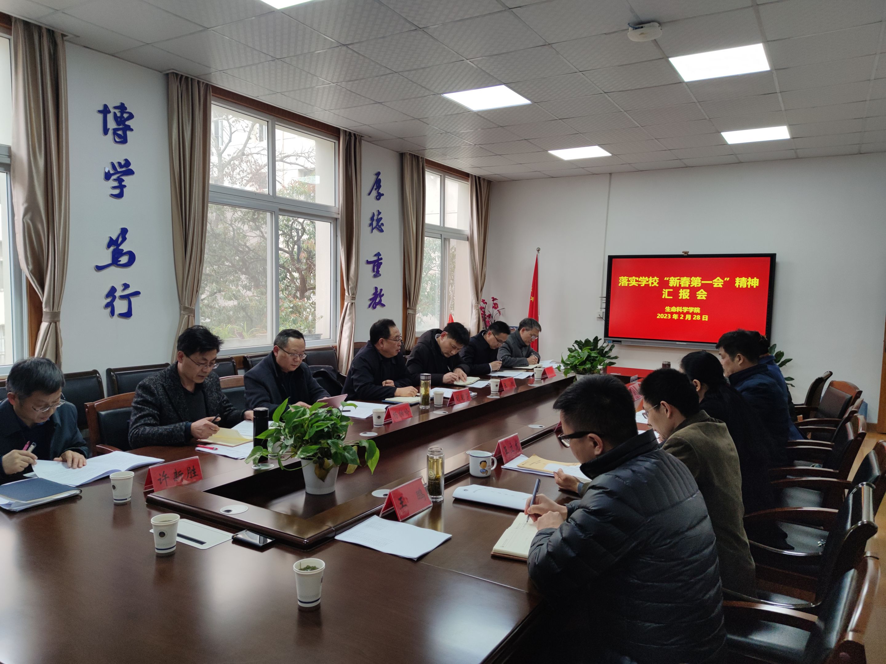 在认真听取发言后,胡朝荣对生科院贯彻落实学校“新春第一会”精神工作计划给予了充分肯定。他指出,今年是学校全面实施“两大振兴行动计划”的关键一年,也是建校95周年,我们将以什么样的姿态迎接建校100周年,既定在建校百年之际的奋斗目标是否能够达成,振兴安徽师大、重塑昔日辉煌的愿景是否能够实现,做好今年的工作都至关重要。要切实增强使命感责任感紧迫感,层层传导压力,逐级压实责任,通过各类会议把学校“新春第一会”会议精神传达到学院每一位教职工。要严格按照部署要求,结合学校2023年工作要点、“十四五”规划调整,坚持目标导向、问题导向、结果导向,进一步摸清家底、认清形势、自我革命、深度分析、真抓实干,明晰2023年工作目标和“十四五”后半段目标,认真抓好落实;各职能部门要抓好顶层设计和统筹谋划,和学院之间加强沟通协调,做好对接,切实把学院事业发展报告这张“答卷”答实答好。