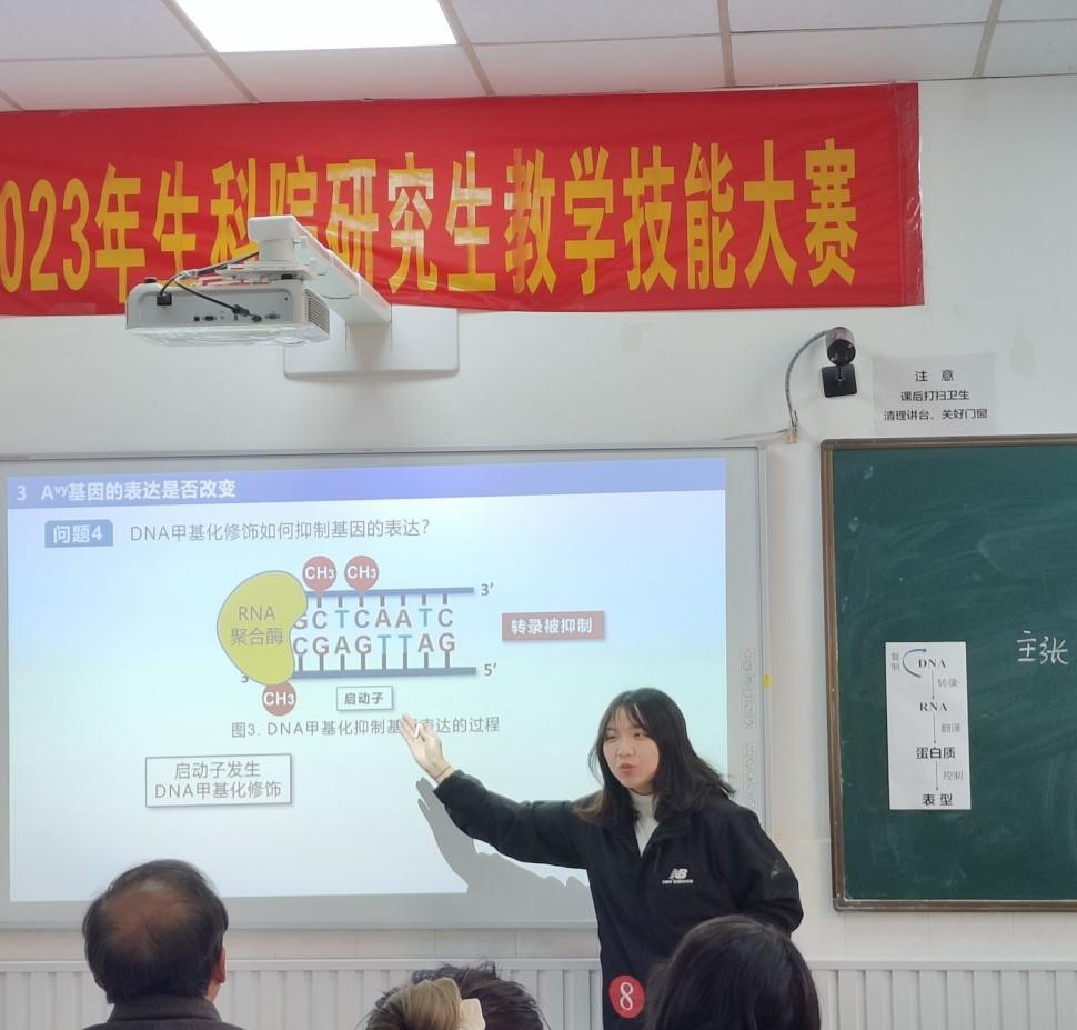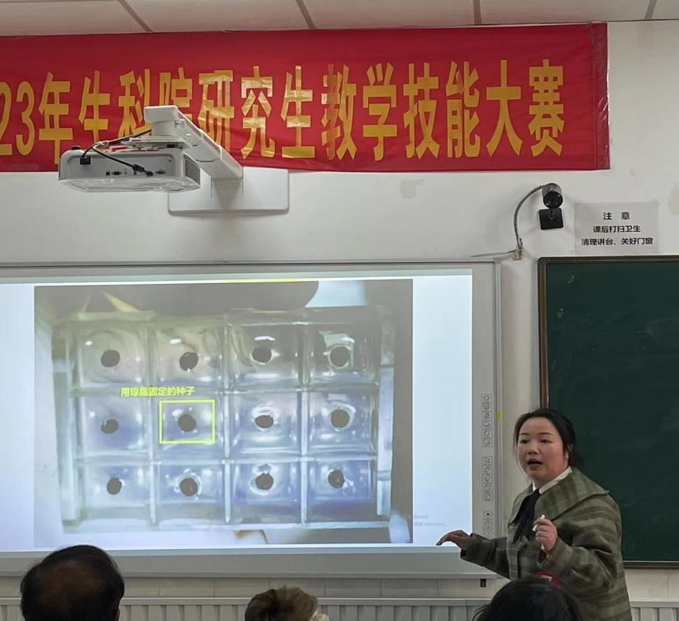 经过初赛的激烈角逐,共有十位选手成功进入决赛。比赛过程中,每位参赛选手通过展示PPT、板书或教具的方式进行了10分钟的微格试课,对表观遗传、孟德尔豌豆杂交实验,细胞膜的结构和功能等生物知识进行了精彩讲解。他们的教态自然得体,语言表达准确流畅,教学思路清晰明了,教学方法新颖独特,充分彰显出了扎实的教学功底以及自信昂扬的青春风采。最终,2022级研究生张惠莹、杨媚迪斩获了本次比赛一等奖。